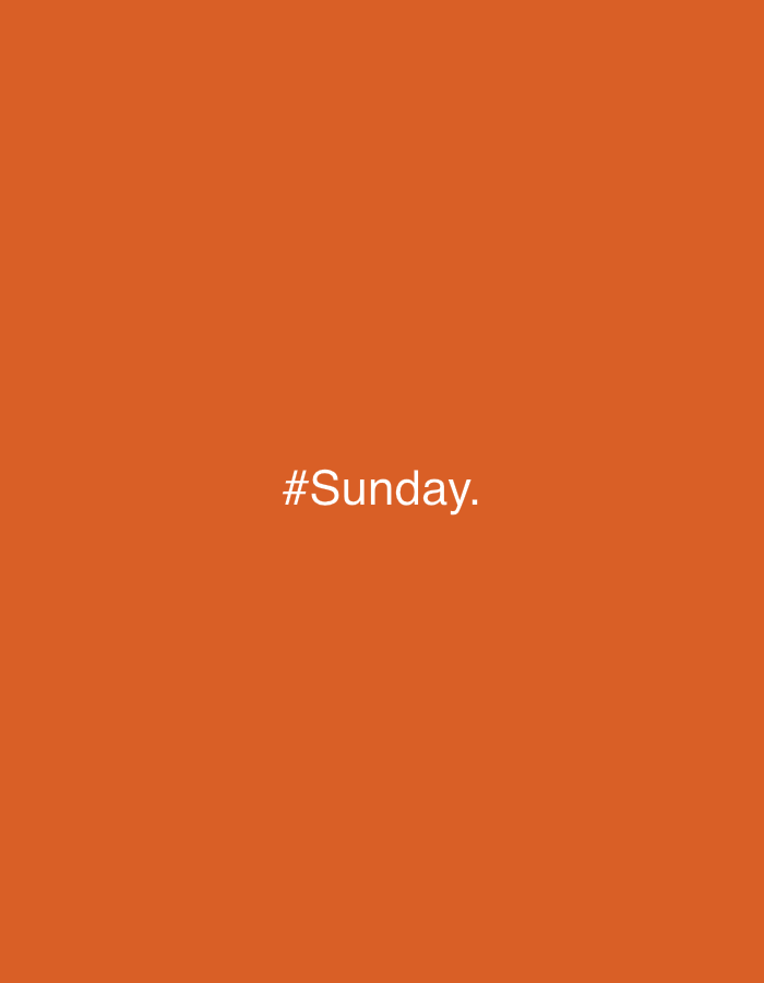 An orange background features the white text "#Sunday." in the center.