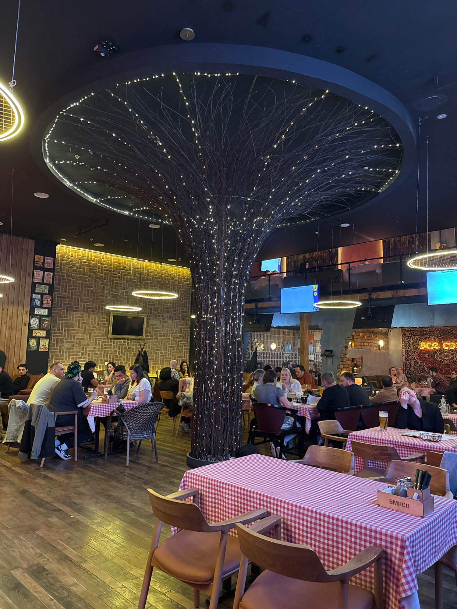 Here's a description of the image: **Location:** The image appears to be taken inside a restaurant, likely in Tashkent, Uzbekistan, based on the Cyrillic signage visible in the upper portion of the i…read more