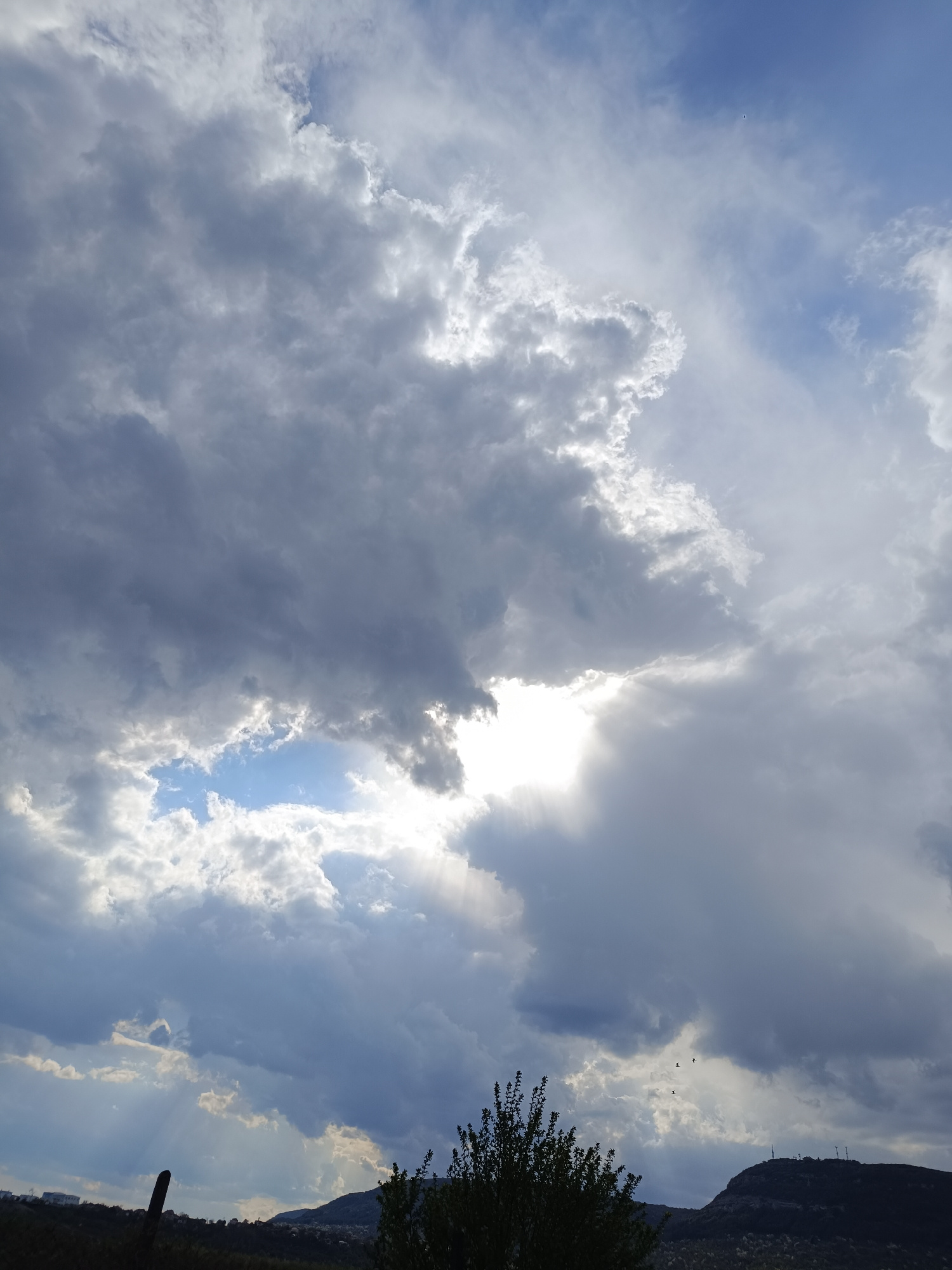 The image displays a dramatic sky over a distant landscape, likely captured in Shumen, Bulgaria. The upper two-thirds of the frame are dominated by a tumultuous sky filled with a complex arrangement o…read more