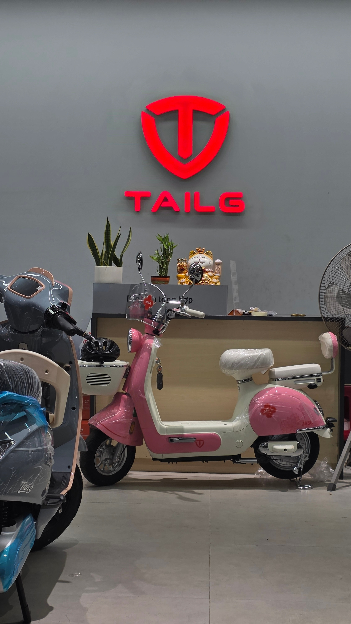 The image presents an indoor scene featuring a grey wall on the left with a red logo and the word "TAILG" vertically displayed in the same red color. To the right, there's an array of objects and furn…read more