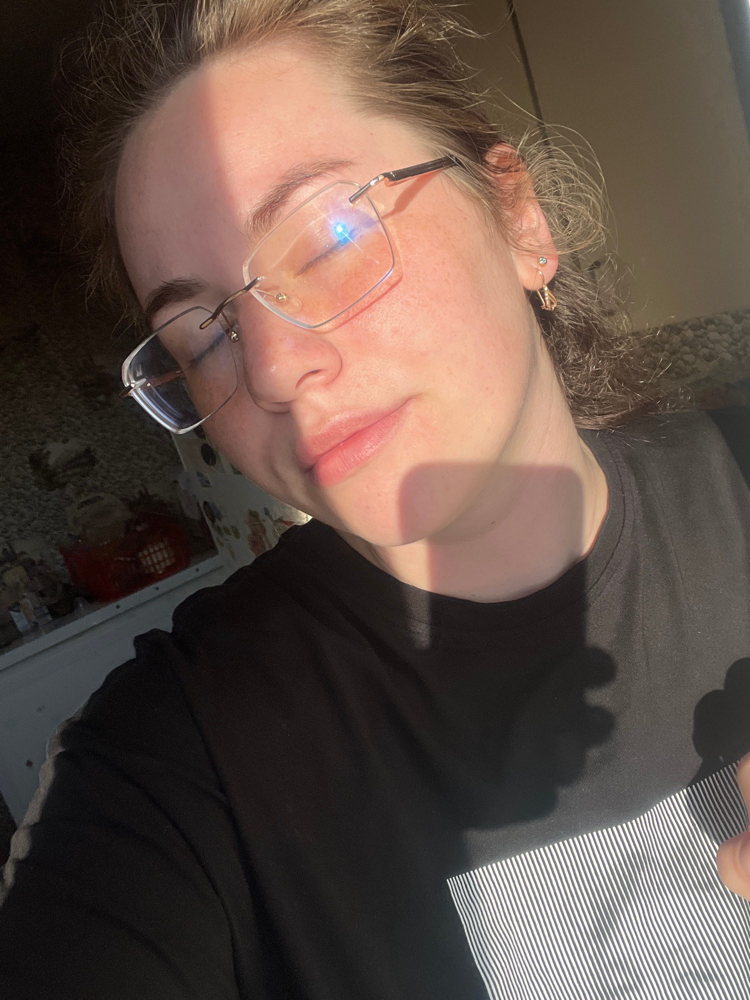 A close-up photograph depicts a person wearing glasses and a dark-colored shirt. The person is positioned at an angle, with part of the face brightly illuminated. The location is indicated as Сосново,…read more