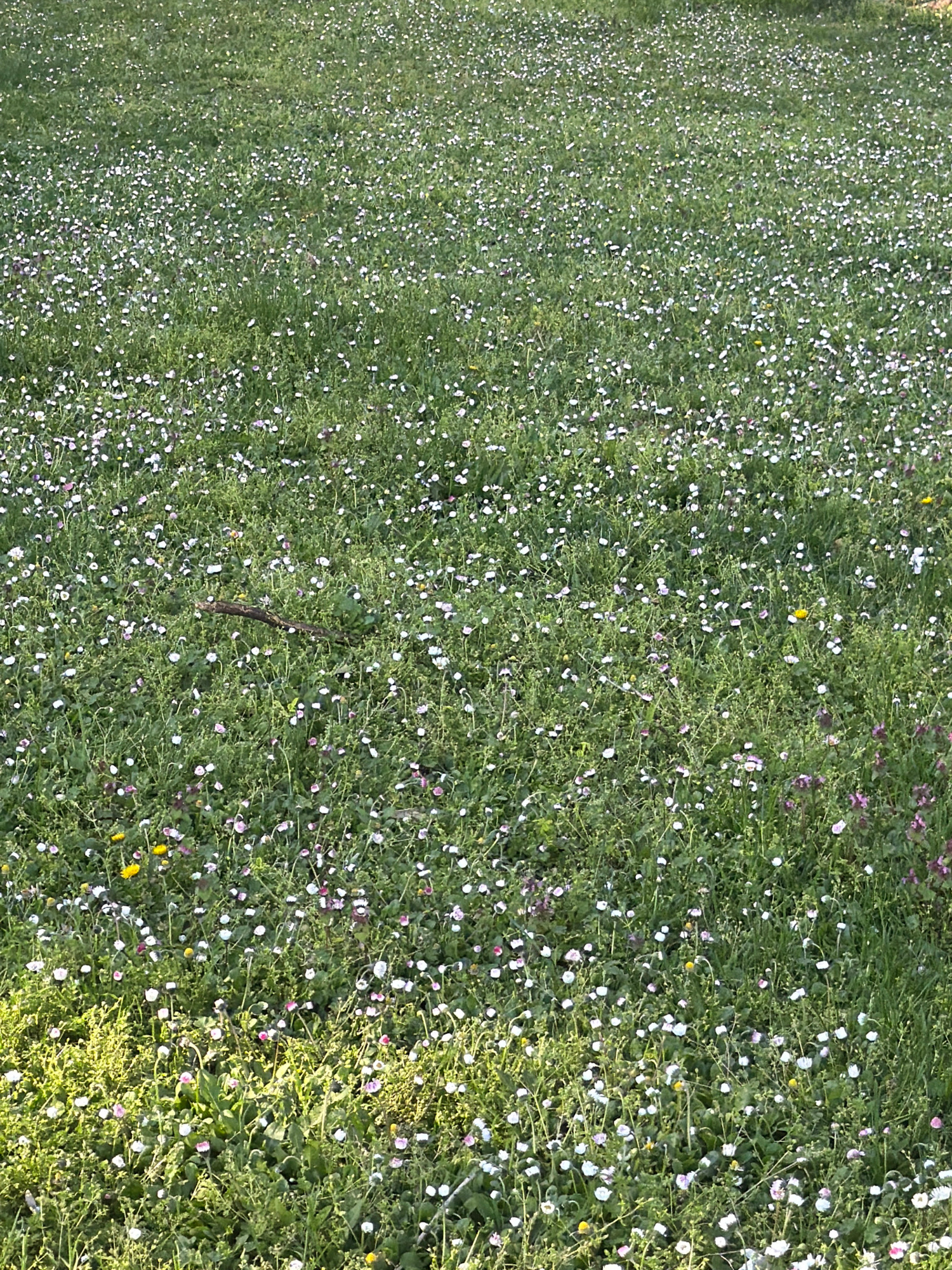 The image depicts a field of grass and wildflowers in Plovdiv, Bulgaria. The grass is predominantly green with dense growth, interspersed with numerous small, white and purple wildflowers. The flowers…read more