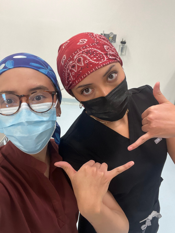 Two individuals are depicted in a close-up, selfie-style photograph taken within a medical facility in Mexico City, Mexico. The background features a light-colored wall with wall-mounted medical equip…read more