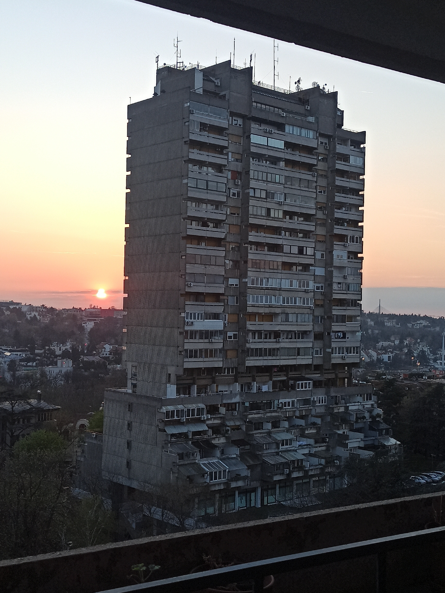 The image captures the Genex Tower, a notable Brutalist architecture landmark, in the Vozdovac Urban Municipality, Serbia. The building, a high-rise apartment block, is seen against the backdrop of a…read more