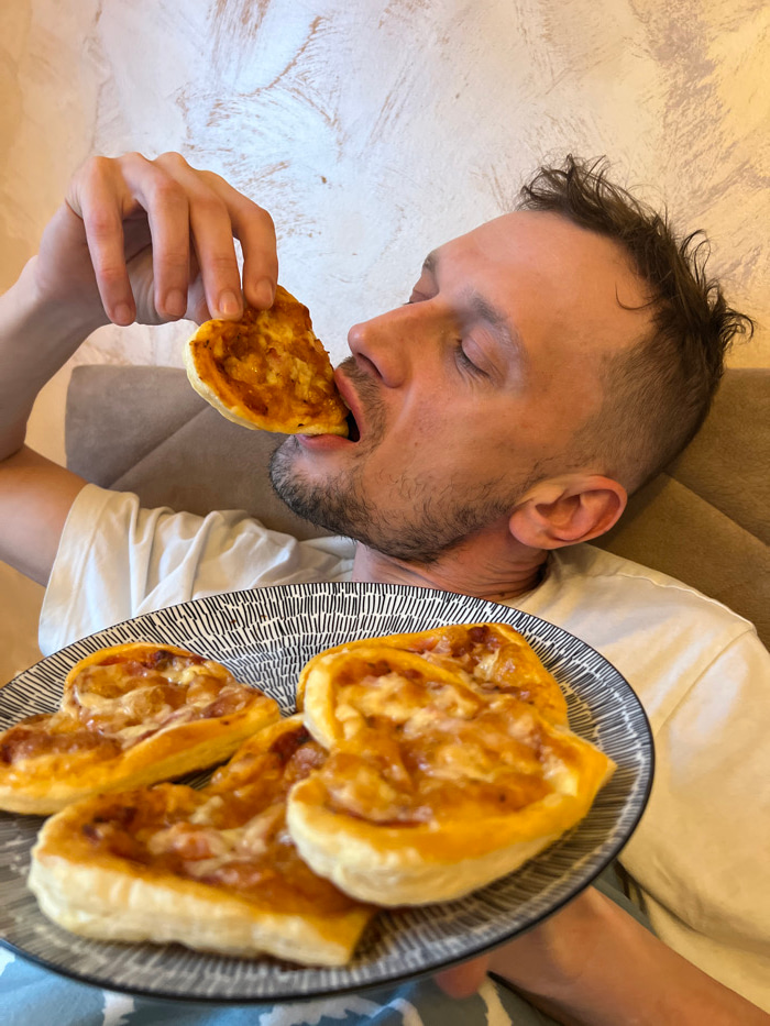 A male individual, estimated to be between 20 and 35 years old, with short dark hair and light facial stubble, is depicted indoors, reclining against a light-colored upholstered surface, likely a head…read more