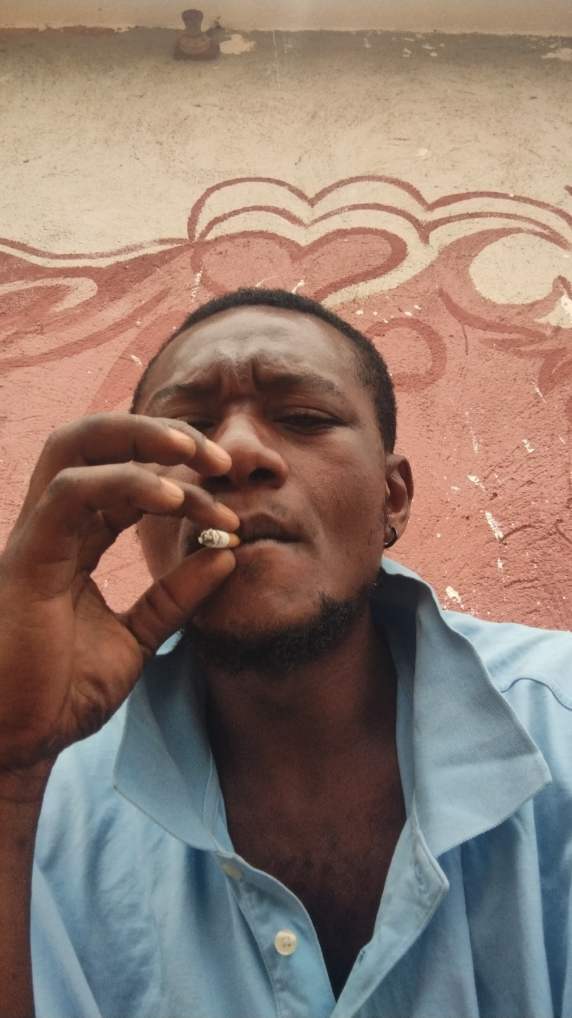 An image, rotated 90 degrees clockwise, features a man of African descent, likely in Jos, Nigeria, in what appears to be a casual setting. The man is seen from the chest up, with his head positioned o…read more
