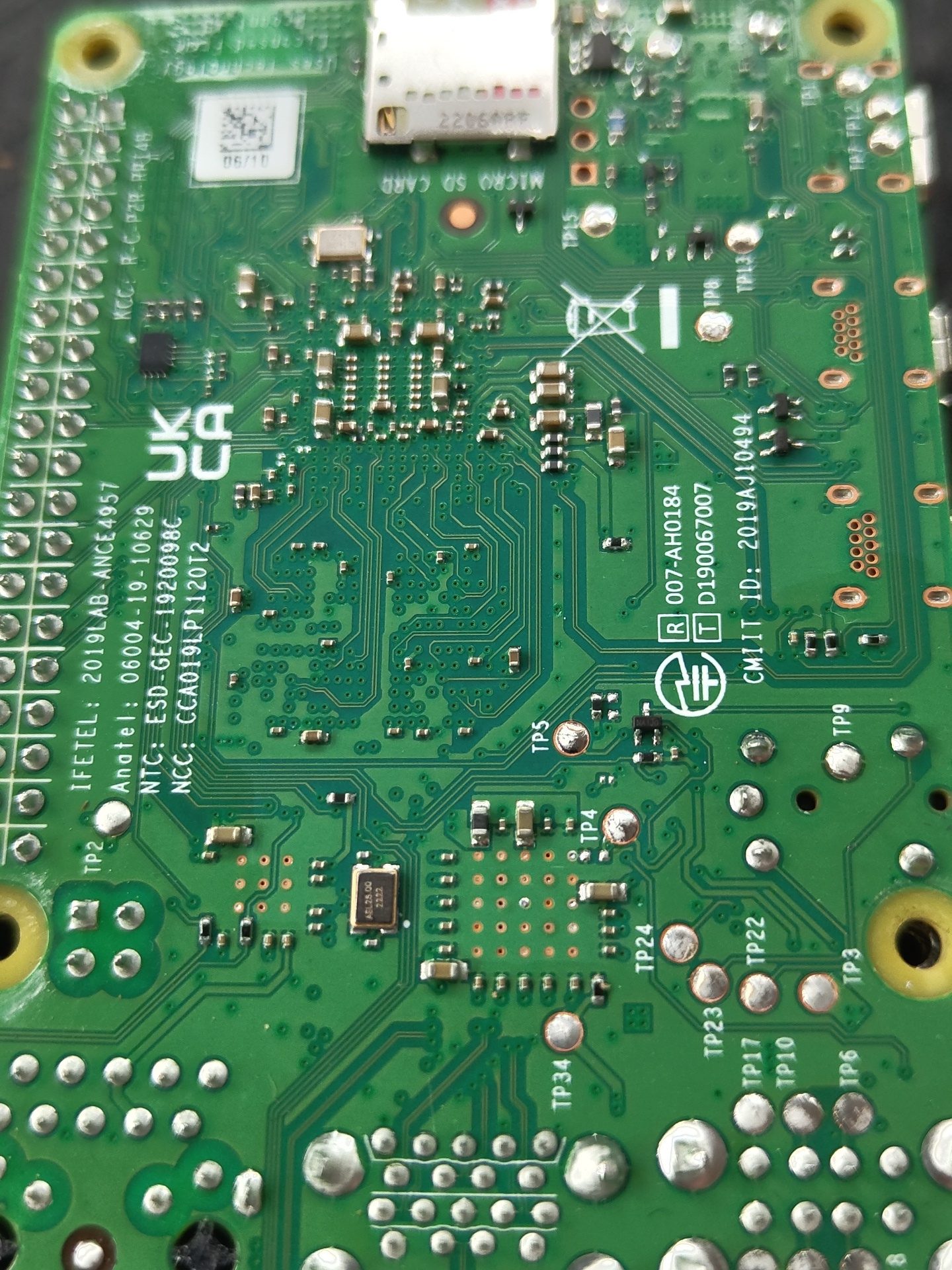 This image depicts a close-up of a green printed circuit board (PCB), likely part of an electronic device. Several components are visible, including small resistors, capacitors, integrated circuits, a…read more