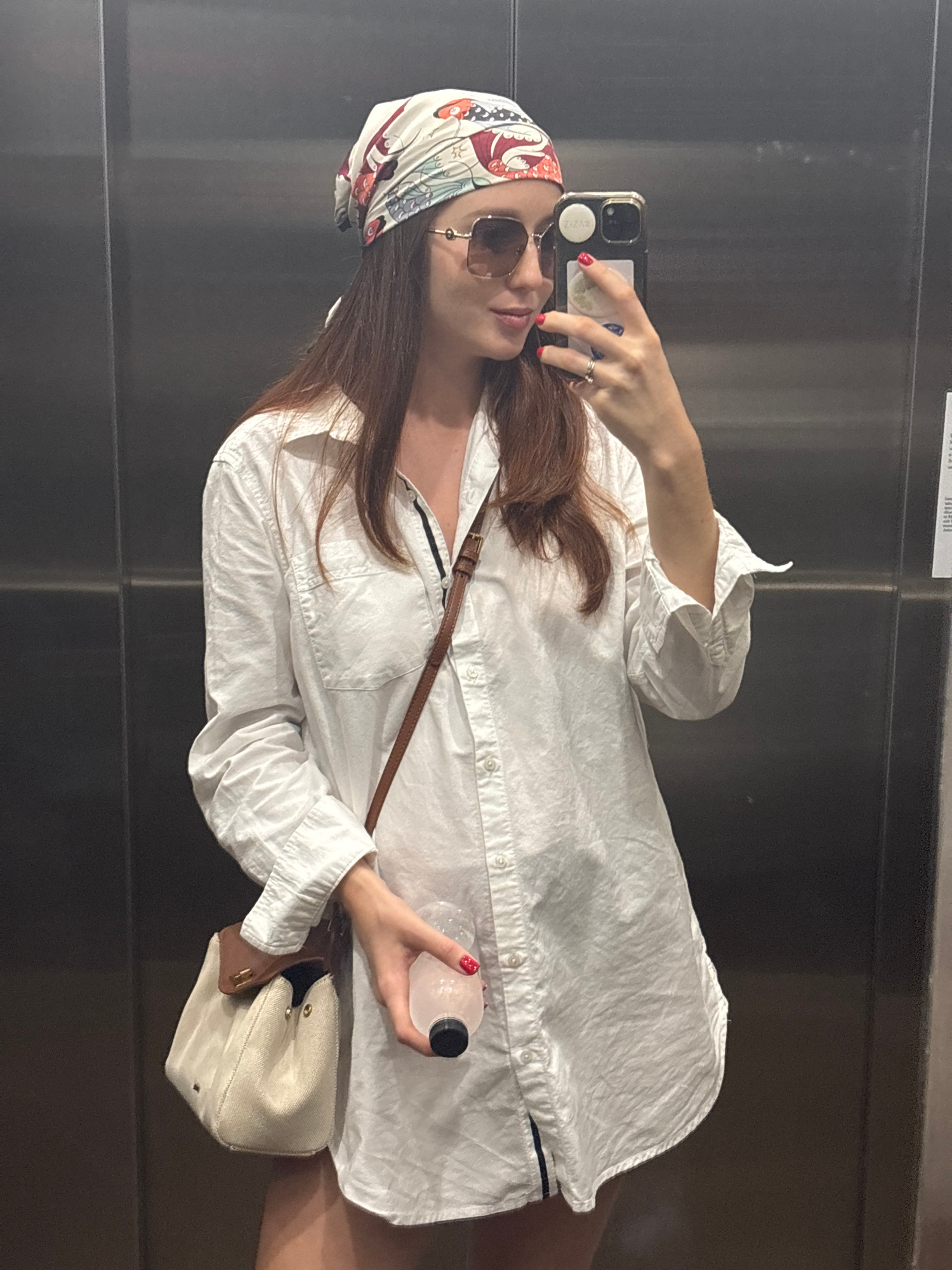 A woman is captured taking a mirror selfie in an indoor setting, likely in Choeng Thale, Thailand. The image is rotated, presenting her horizontally against a dark, reflective background, possibly anβ¦read more