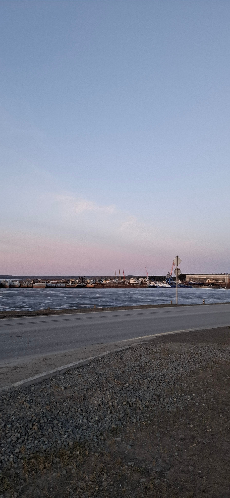 The image shows a view of the city of Chaikovsky, Russia at dusk or dawn. A body of water, likely the Kama River, is visible adjacent to the city's shoreline. The city's skyline consists of buildings,…read more