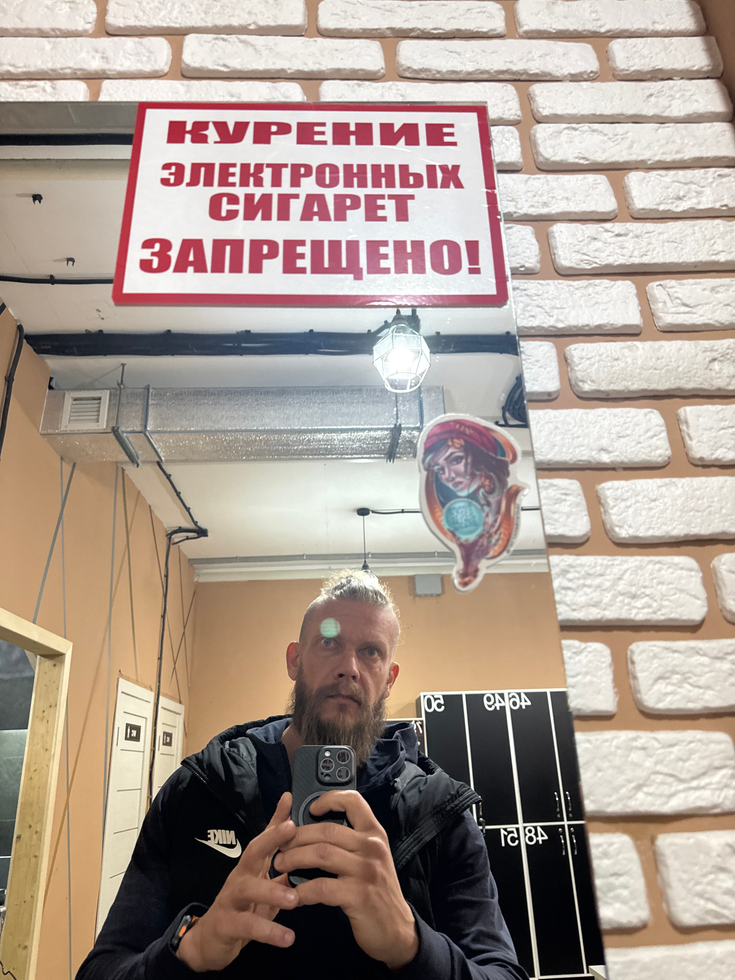 This media file captures a selfie taken by a man in a mirror, with the image rotated 90 degrees clockwise. The man, seen in reflection, has a beard and fair hair, and is wearing a dark jacket with a vā¦read more