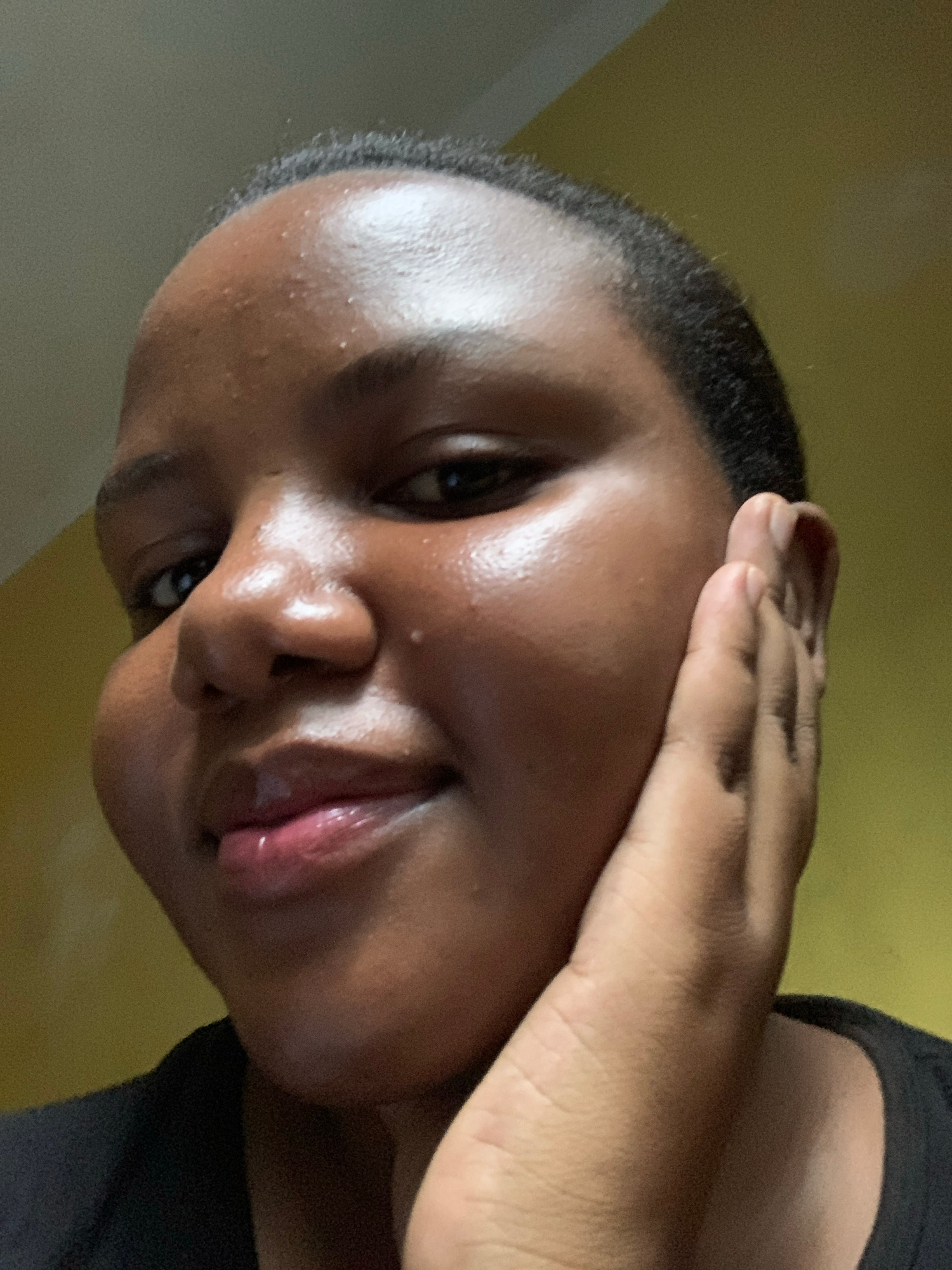 A close-up portrait of a dark-skinned person with short, dark hair is visible. They have a hand resting on their forehead and cheek. The background is a yellowish color. There are no elements indicati…read more