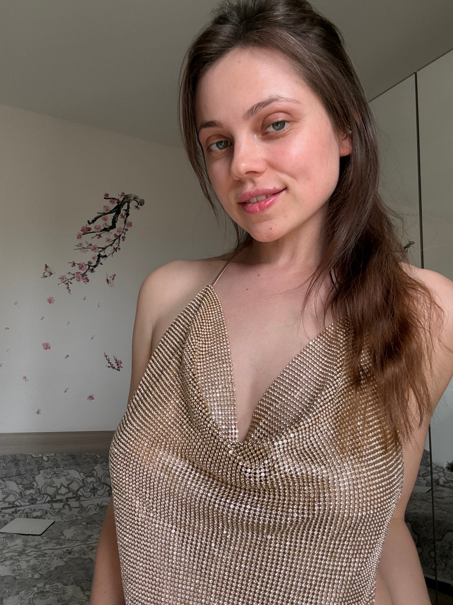 A female subject, identified as a young adult, is depicted in a self-portrait within an indoor setting, specified to be located in the city of Ercolano, Italy. She has long, dark brown hair, light-col…read more