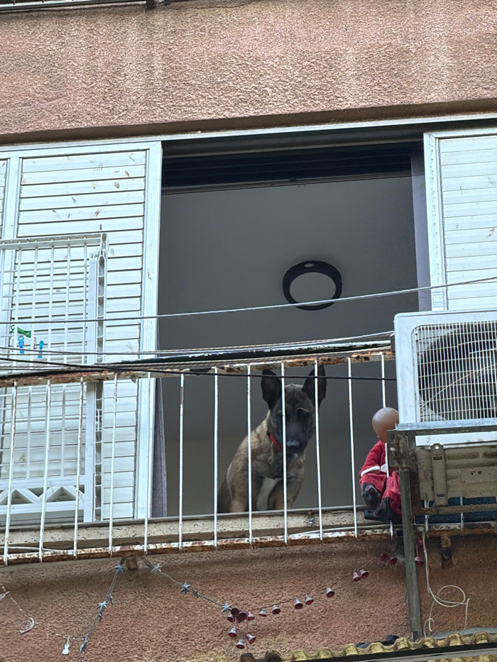 This image depicts a segment of a multi-story residential building facade in an urban environment, identified as Tel-Aviv, Israel. The primary focus is on a balcony and the floor directly above it. O…read more