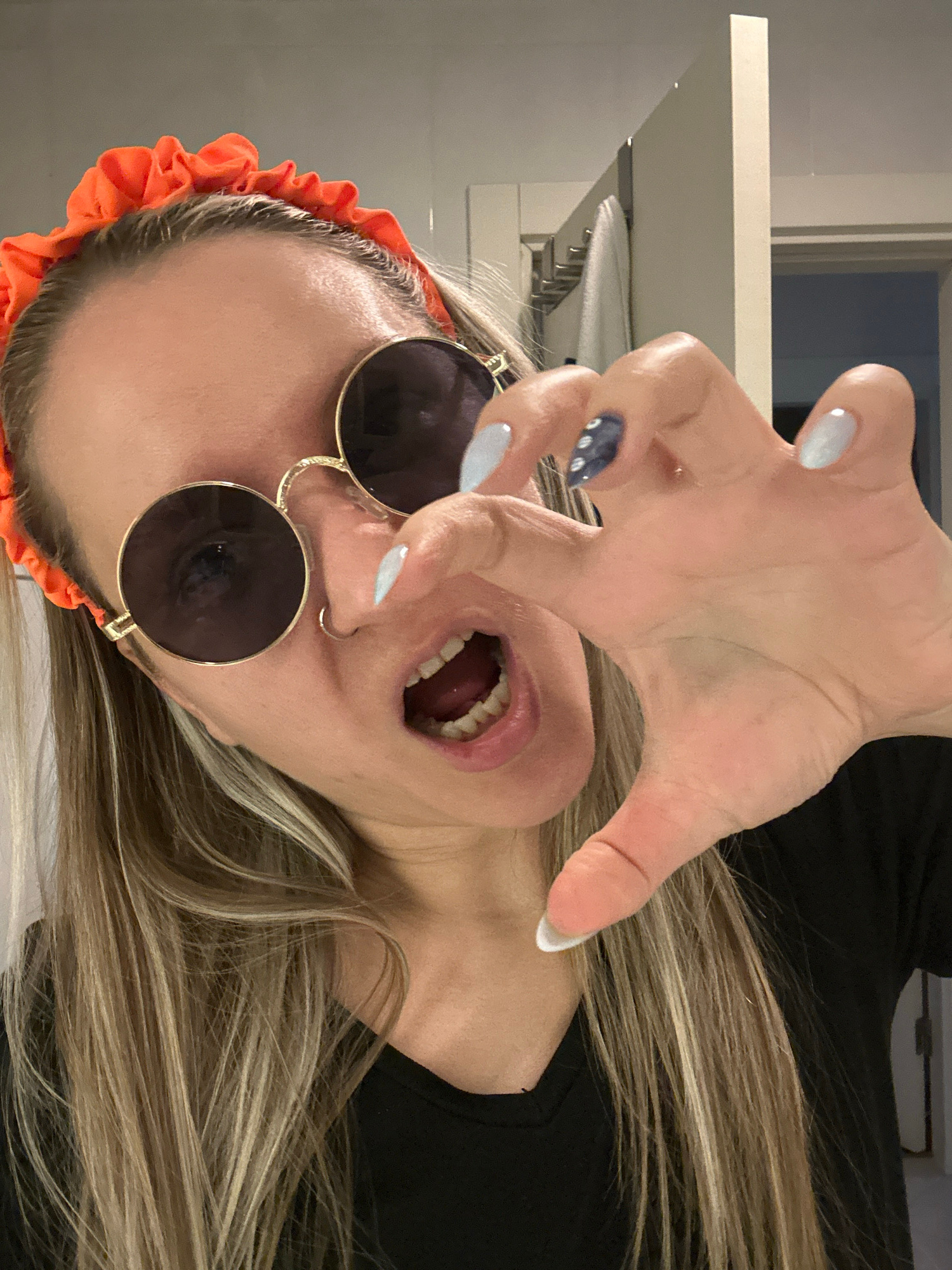A close-up photograph captures a female individual in an indoor setting, identified as Esenyurt, Turkey. The subject has long, light brown hair with blonde highlights and wears an orange ruffled headb…read more