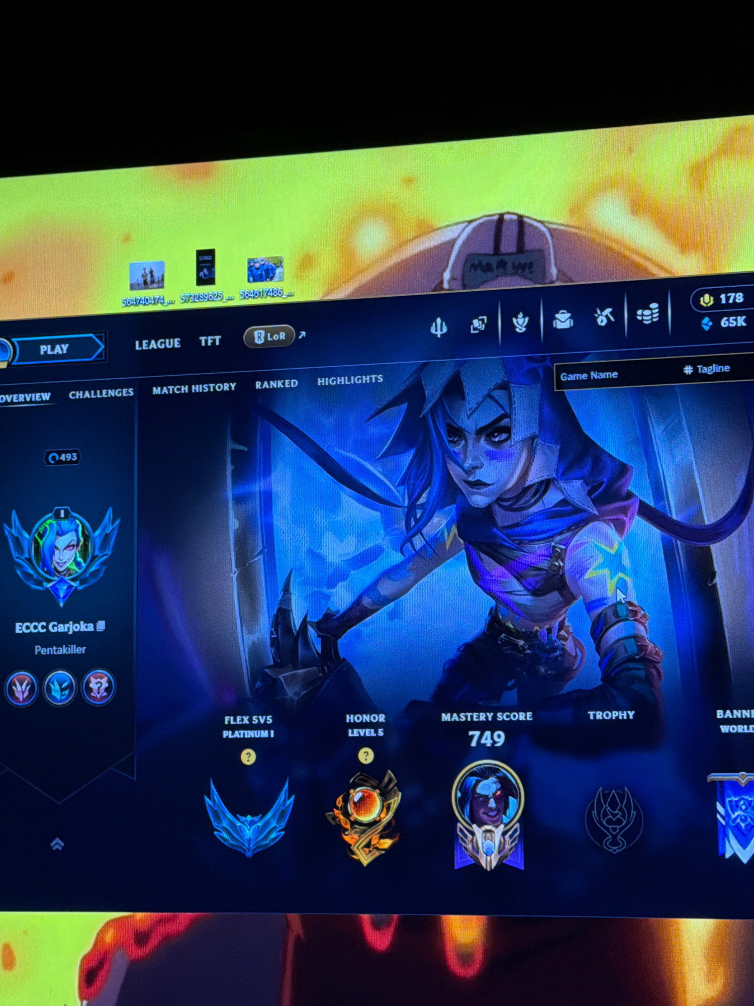 The image shows a computer screen displaying the League of Legends client. The "Play" tab is selected, and the screen shows the player's profile. The player's username is "ECCC Garjoka" and they are i…read more