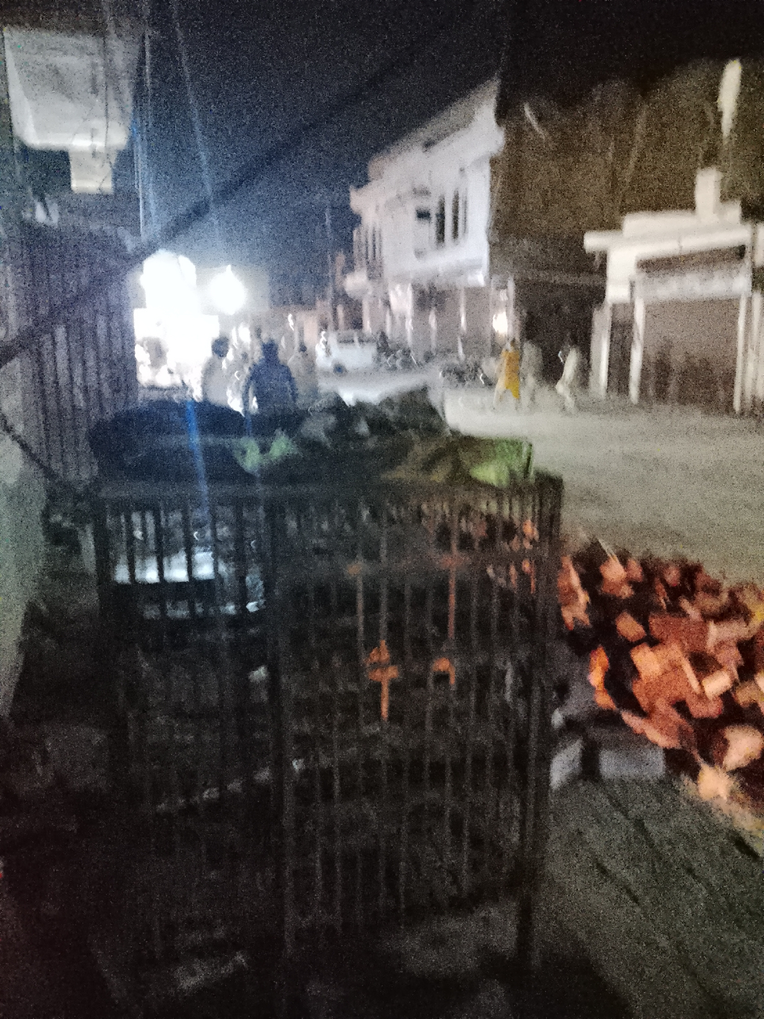 This blurry, grainy, and low-light image captures a nocturnal street scene in what appears to be an urban or semi-urban environment, consistent with Multan, Pakistan. The foreground is dominated by a…read more