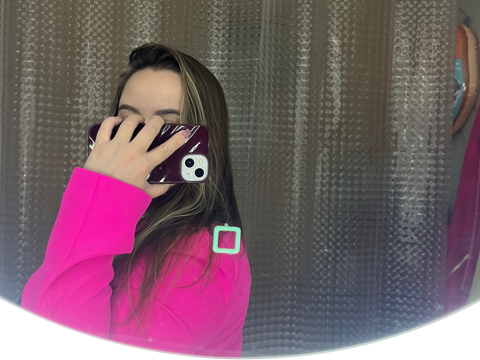 An image, rotated 90 degrees counter-clockwise, depicts a person taking a mirror selfie in an indoor setting, likely in Krasnodar, Russia. The subject is a person, appearing to be female, with long br…read more