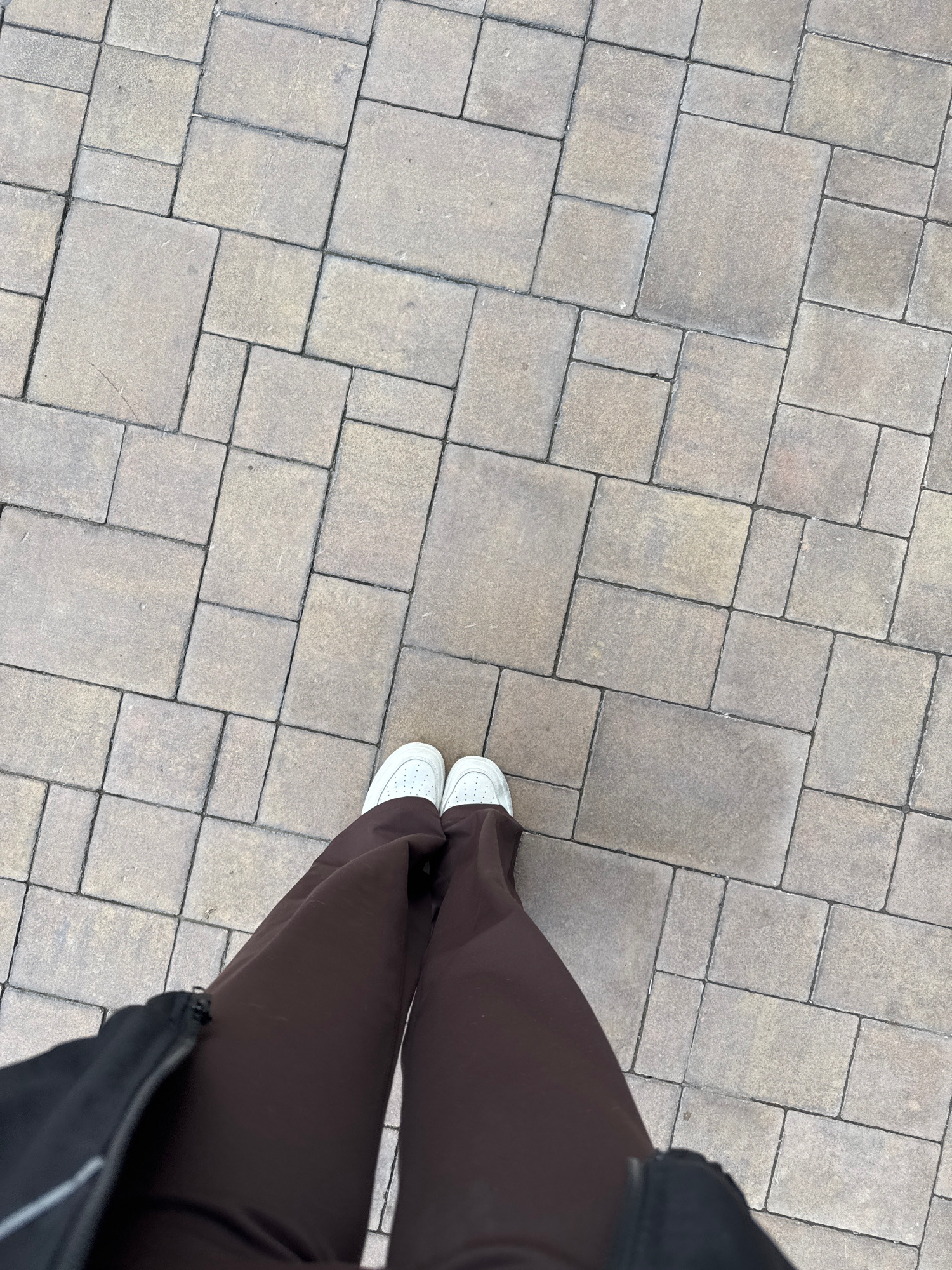 An overhead shot captures a person standing on an outdoor paved surface in Rostov-on-Don, Russia. The lower half of the person's body is visible, showcasing their feet in clean white sneakers with per…read more