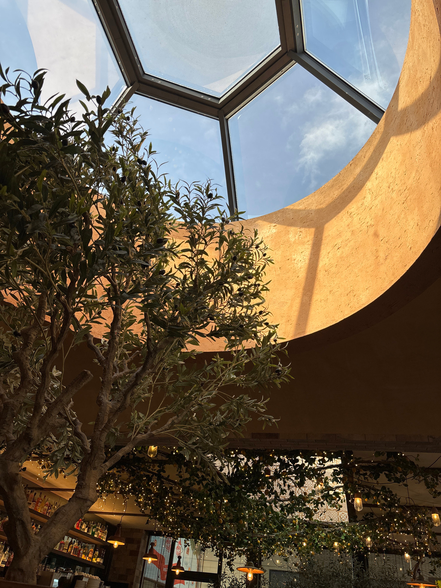 The image shows an indoor scene with an arched window framing a view of a blue sky with some clouds, possibly in Varna, Bulgaria, as the location was requested. The arch appears to be made of a rough,…read more