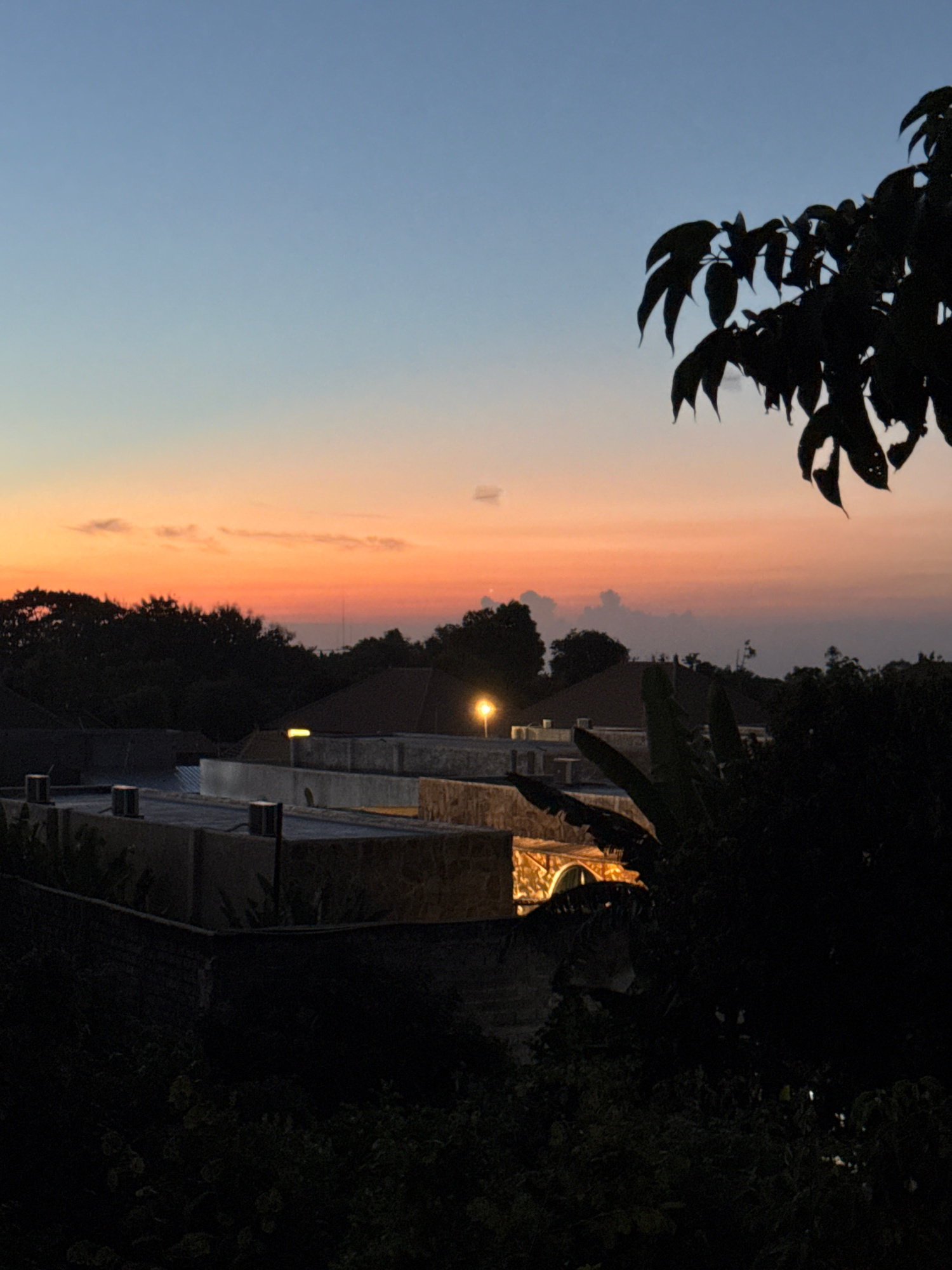 This media file captures a tranquil twilight scene in Kuta Selatan, Indonesia, depicting the transition from day to night. The sky, occupying the upper and central parts of the frame, displays a softโฆread more
