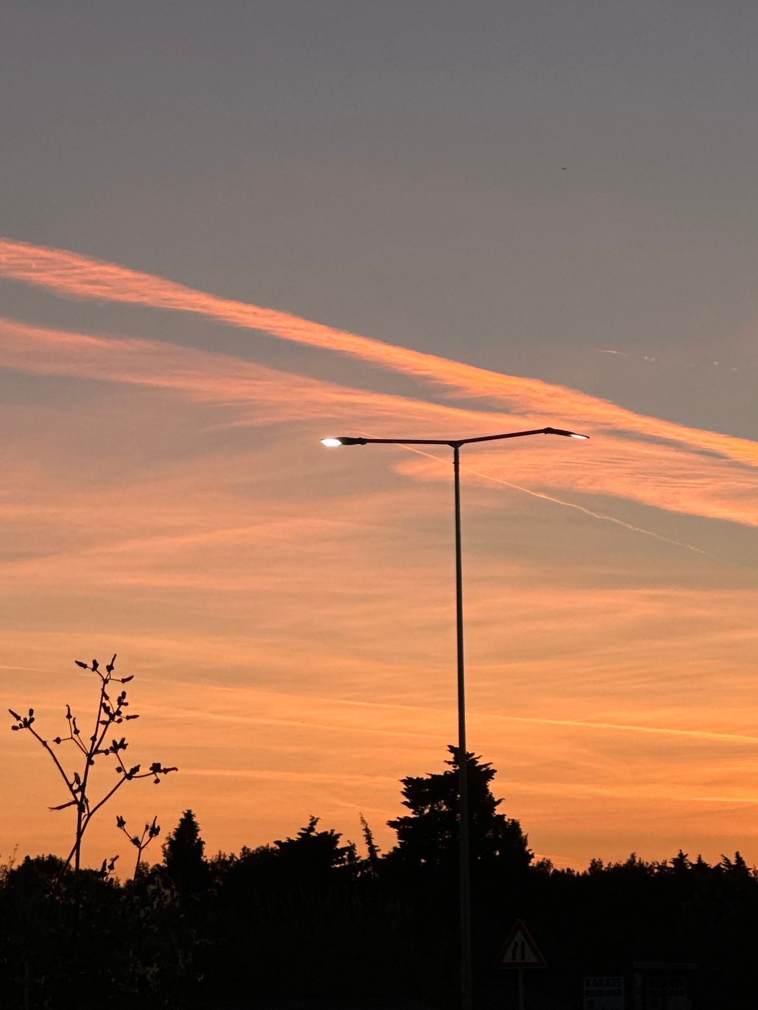 The image captures a dusky scene, likely at dawn or dusk, in what is suggested to be Šušanj, Montenegro. Dominating the view is a street lamp, with both of its lights illuminated. The background revea…read more