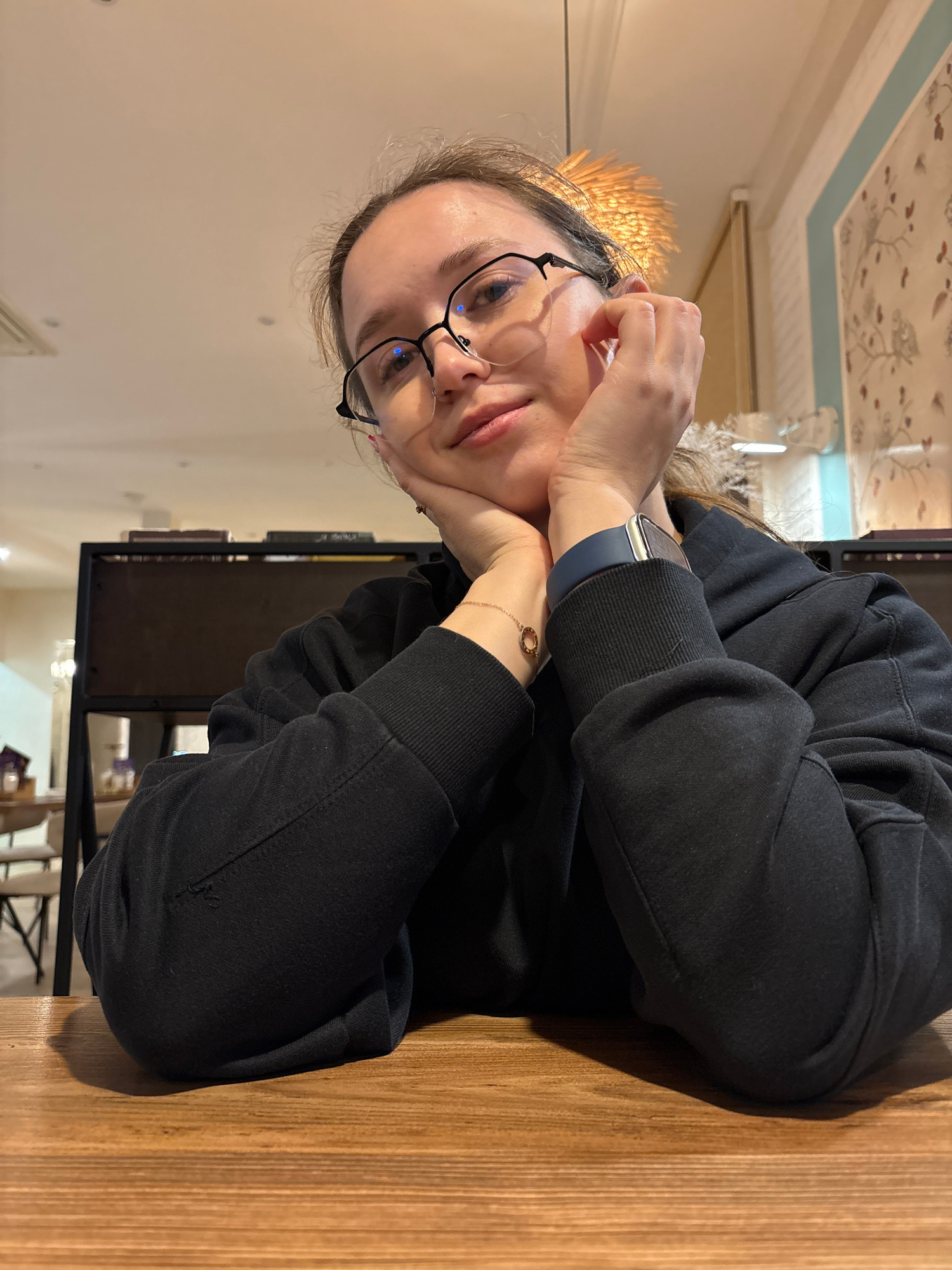 A person wearing glasses, a black hooded sweatshirt, and a golden straw crown is seated at a wooden table in what appears to be an indoor setting. The person's hands are resting on their face. The background is slightly blurred, suggesting an interior space with light-colored walls and decorative elements. The location in Izhevsk, Russia, cannot be verified from the image alone. | Open Wire