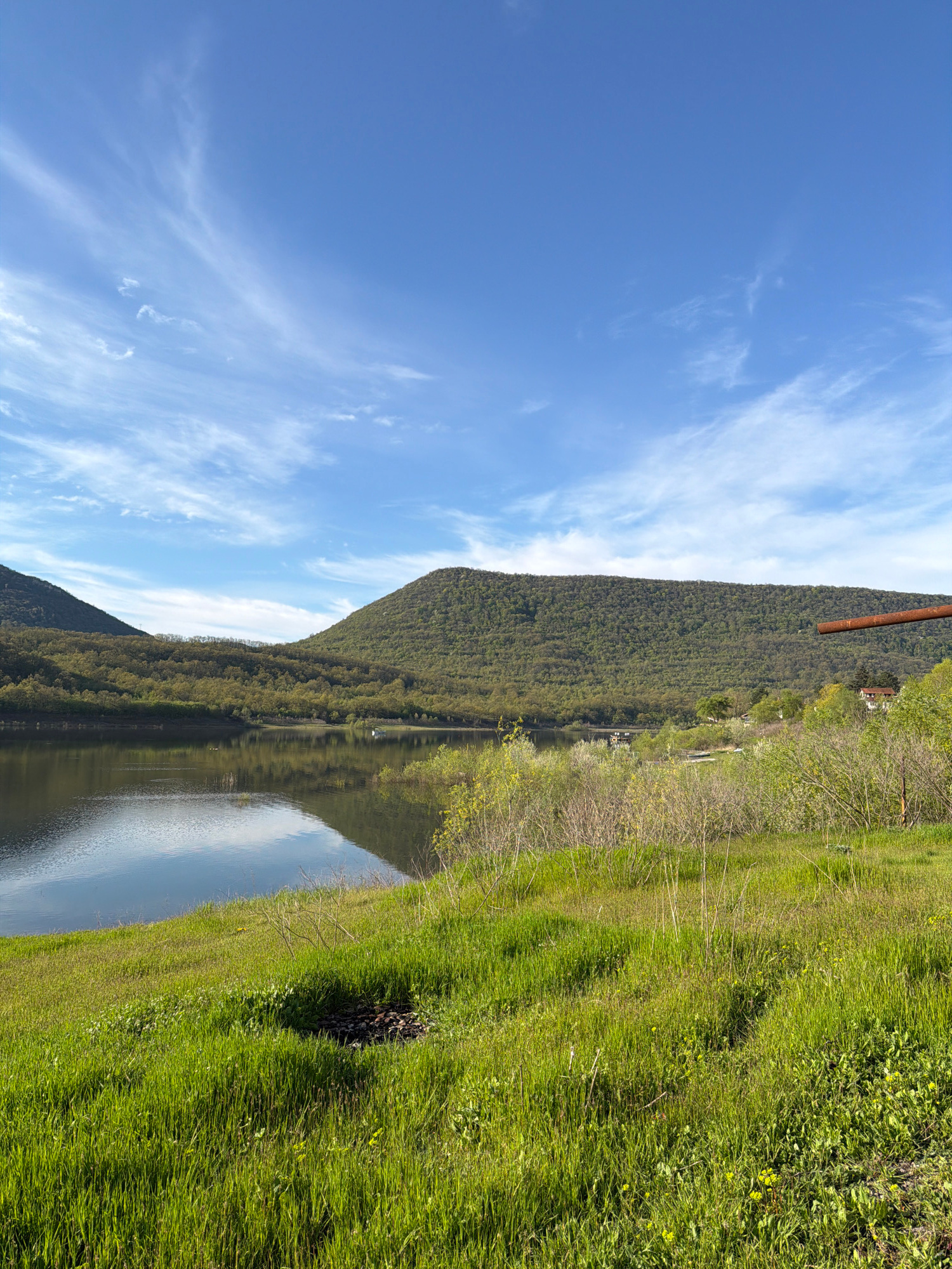 The image displays a serene natural landscape, oriented as if taken in landscape mode but presented in a portrait file format (requiring a 90-degree counter-clockwise rotation for proper viewing). A t…read more