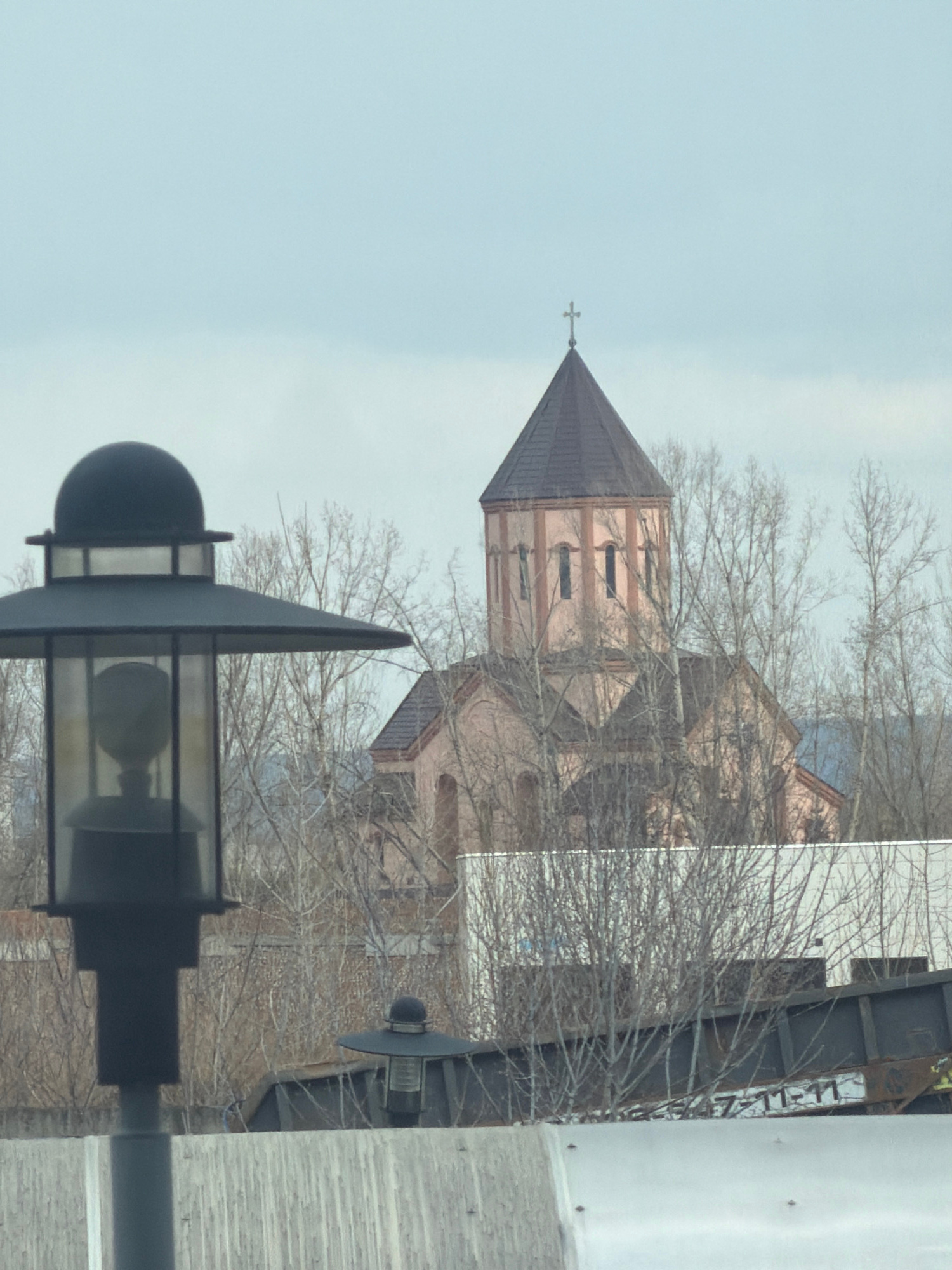 A low-angle shot depicts a section of the Church of the Intercession in Krasnoyarsk, Russia. The church features a tall, multi-story tower with a brown roof topped by a cross. The building's walls are…read more