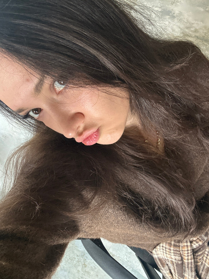 This image captures a close-up, angled selfie of a young woman, purportedly taken in Zovuni, Armenia, although visual elements within the frame do not confirm this specific geographical location. The…read more
