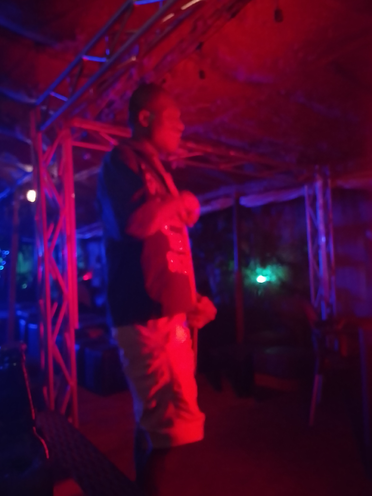 A man stands in an indoor space, illuminated by red and blue lighting, possibly a bar or club. The location is inferred to be Yelwa, Nigeria. The man is wearing a dark-colored shirt and light-colored…read more