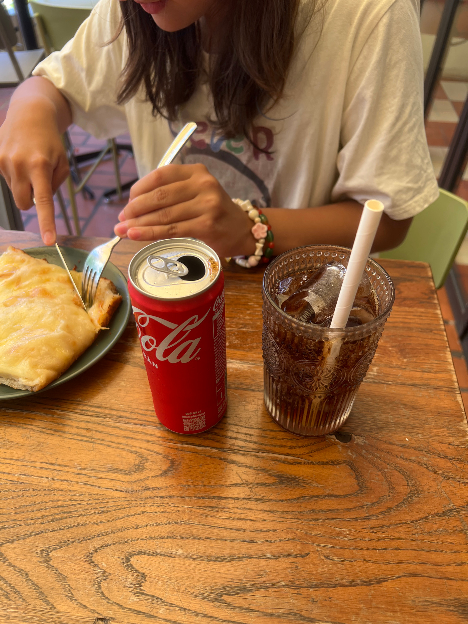 The scene captures a moment at an outdoor cafe in Nha Trang, Vietnam. A person is seated at a wooden table, visible from the chest up. The individual wears a white t-shirt and a bracelet with floral b…read more