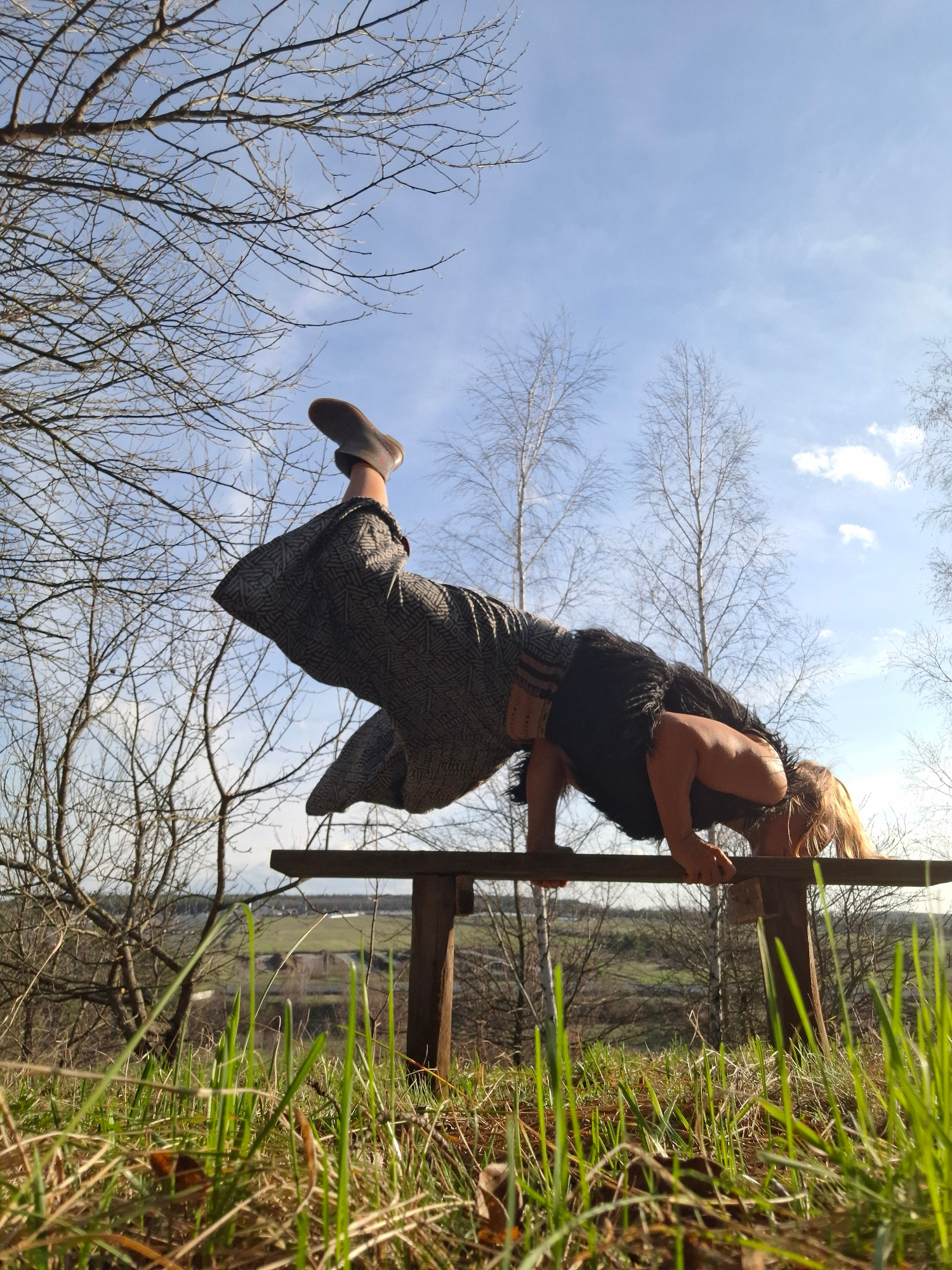 The image, rotated 90 degrees clockwise, captures a dynamic low-angle view of a person climbing or vaulting over a rustic wooden fence. The individual, with windblown blonde hair, wears a dark, possib…read more