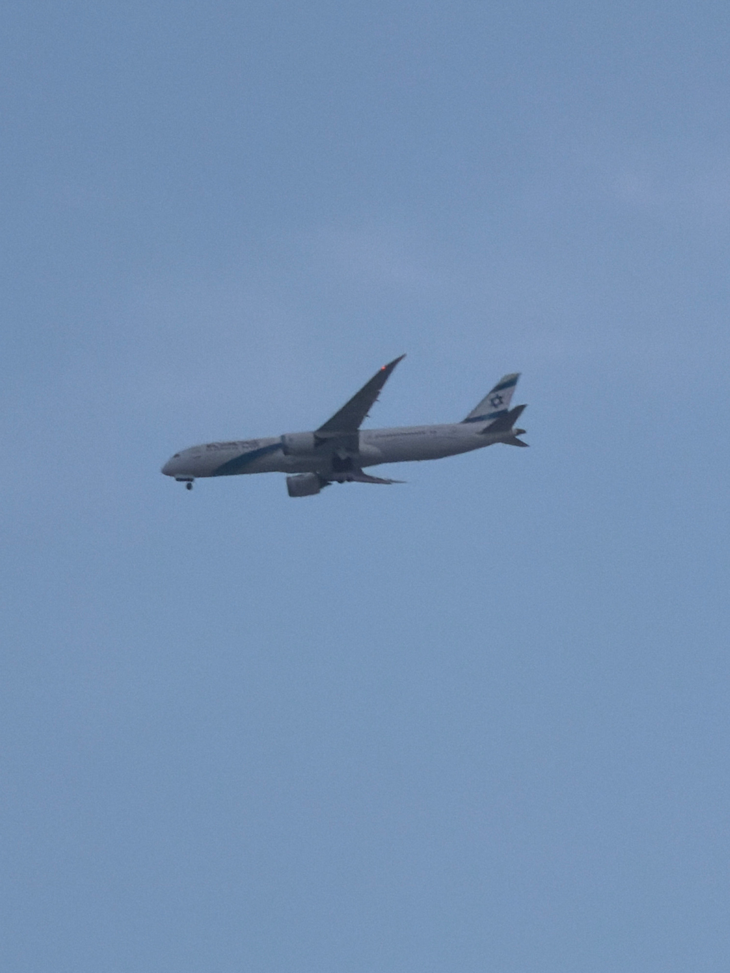 An aircraft is flying upside down in a clear blue sky. The aircraft's tail fin has a blue-and-white Star of David insignia. The location is unknown.