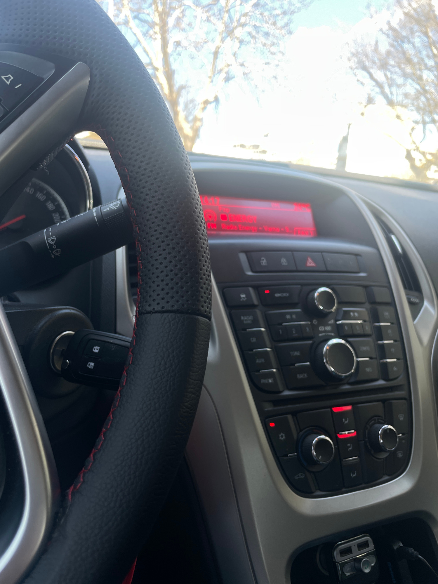 The image shows the interior of a car, with the steering wheel, dashboard, and car key in focus. The radio display shows "Radio Energy - Varna," indicating the location is Varna, Bulgaria. The dashboa…read more