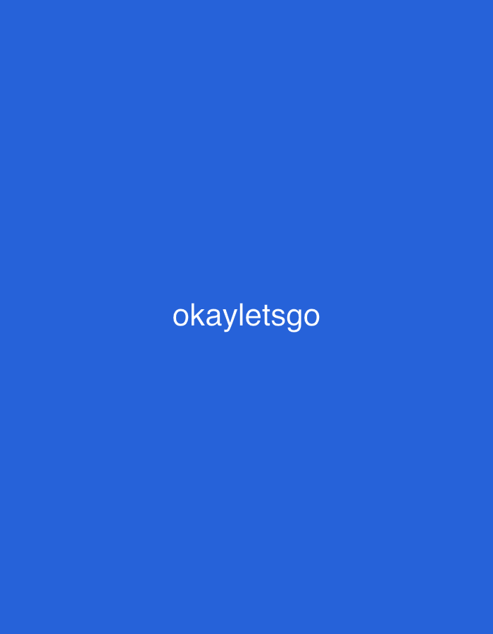 The image is a blue background with the word "okayletsgo" in white text centered on the screen. There is no other information visible in the image.