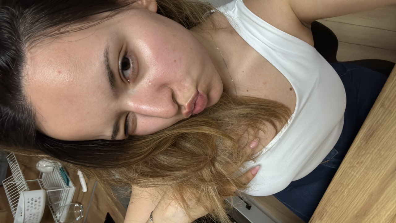 Two red LEGO roses are in a clear, ribbed glass vase. The vase sits on a light brown, wood-grain surface, likely a shelf, within a wooden structure. The scene is indoors. Varna, Bulgaria is not discer…read more