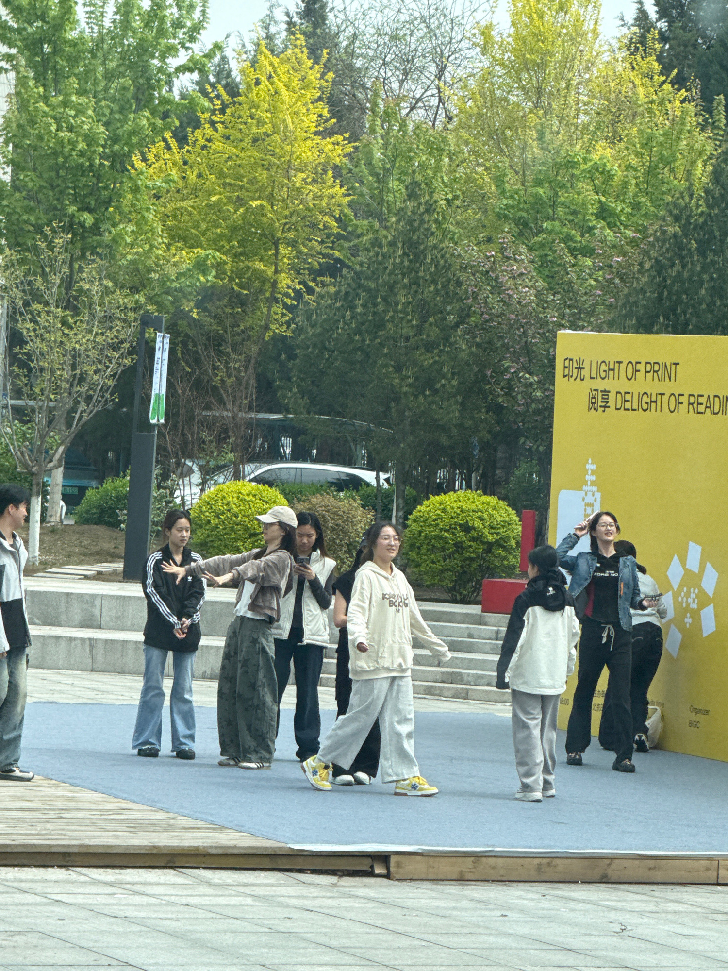 The image captures an outdoor scene in Daxing District, China, on what appears to be a bright, possibly overcast day. The setting suggests a public space, possibly a park or an event area, featuring l…read more