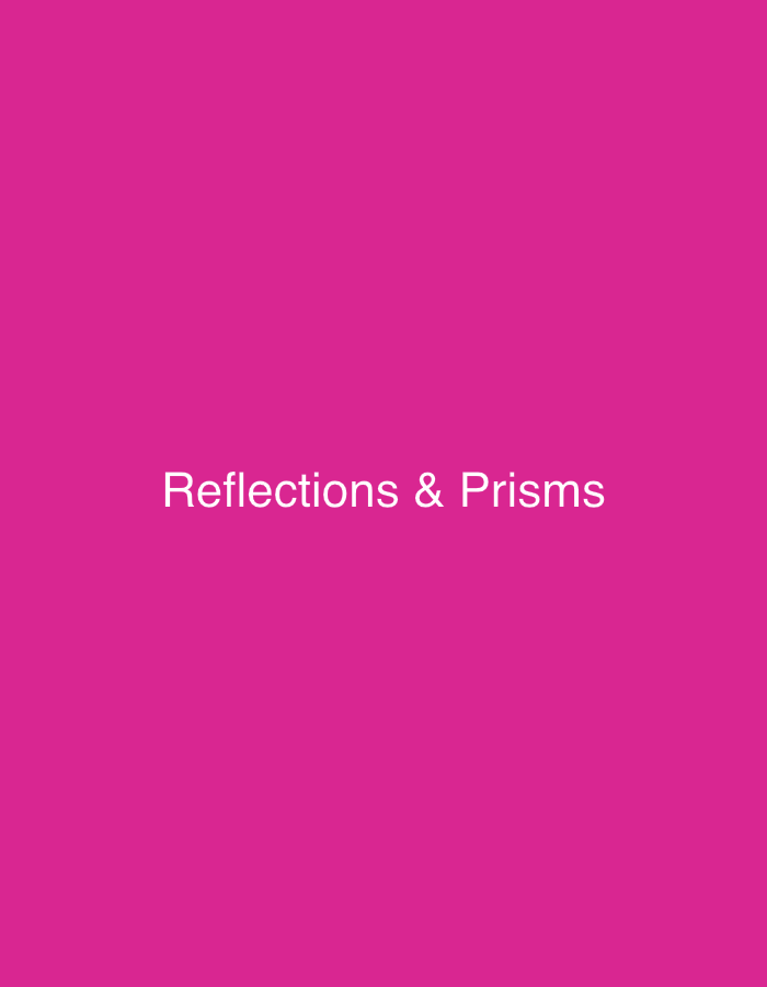 The image is a solid, bright pink background with the white text "Reflections & Prisms" centered on the screen. There is no depiction of the city of New York, people, objects, interactions or the envi…read more
