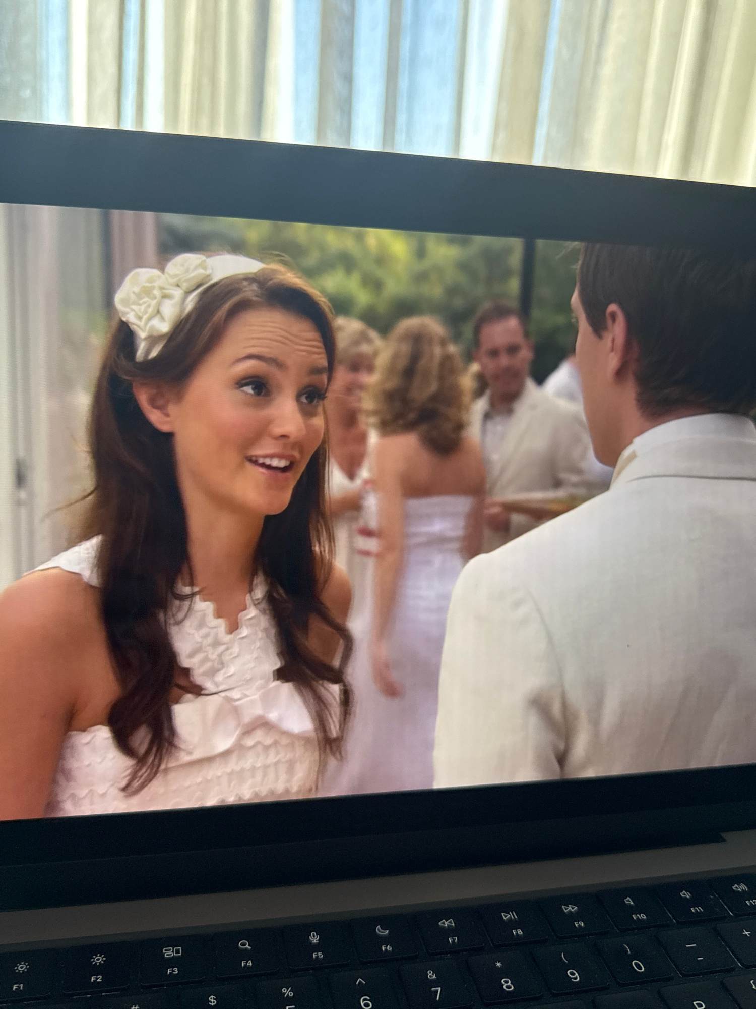 The image displays a laptop screen showing a scene with several people, taken from a slightly upward angle. In the foreground of the screen, a young woman with long, dark hair and a white floral accesβ¦read more