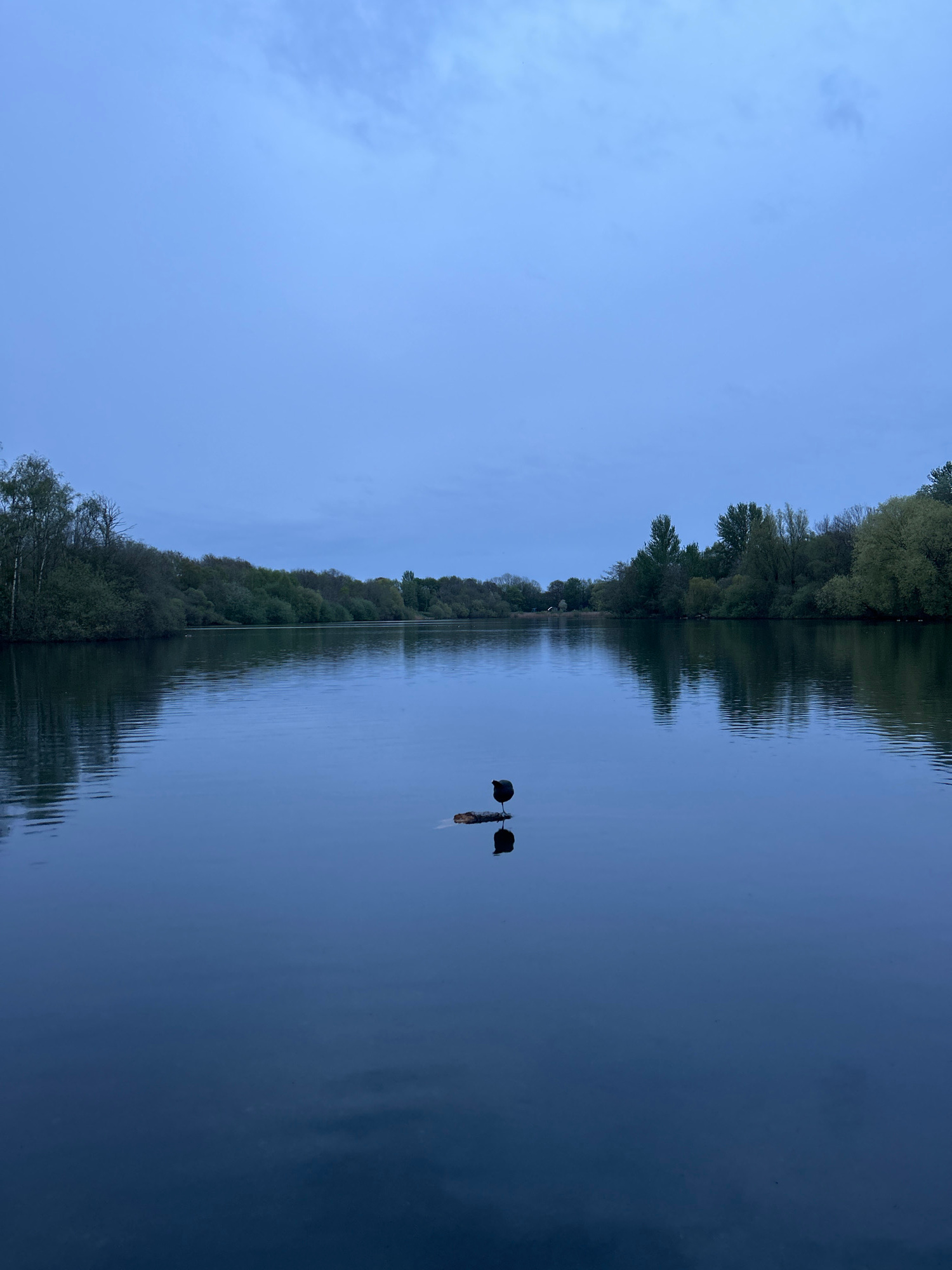 The image captures a serene landscape, rotated 90 degrees clockwise from its natural orientation. When viewed correctly (rotated 90 degrees counter-clockwise), it depicts a tranquil body of water, lik…read more