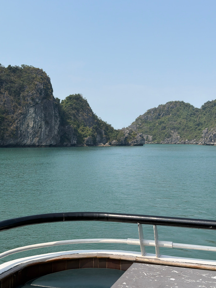 From a high vantage point, an expanse of calm, turquoise water fills much of the frame. On the left, a rugged, rocky coastline covered in lush green vegetation rises from the water's edge towards a pa…read more