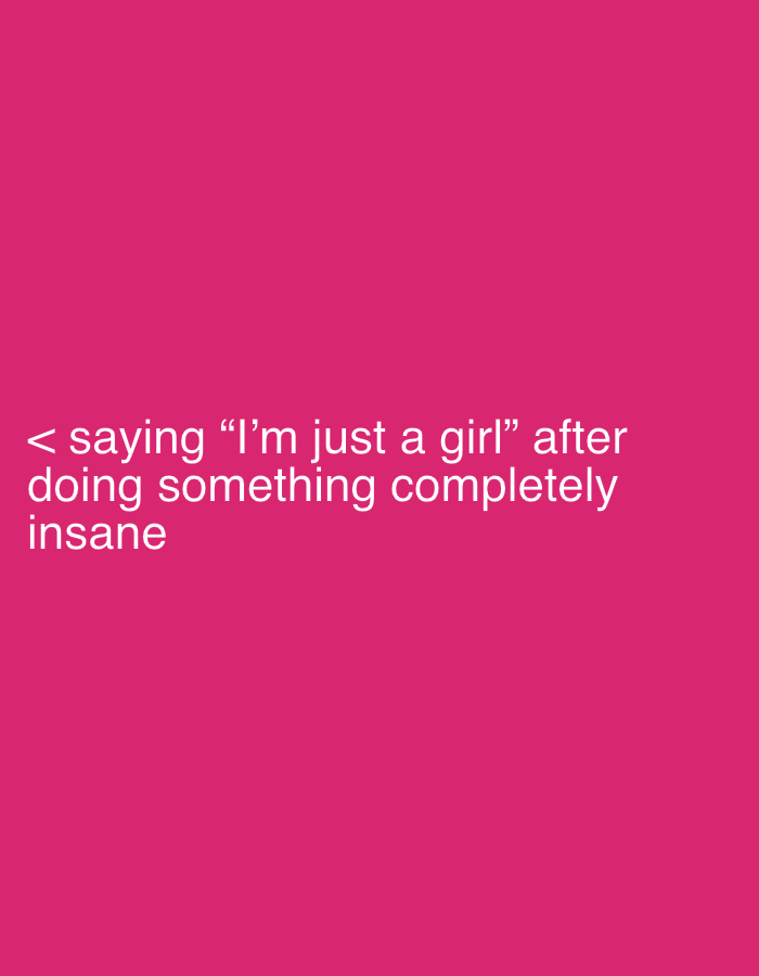 The image features white text on a pink background. The text reads "< saying 'I'm just a girl' after doing something completely insane." There is no information about Tunbridge Wells, United Kingdom,…read more