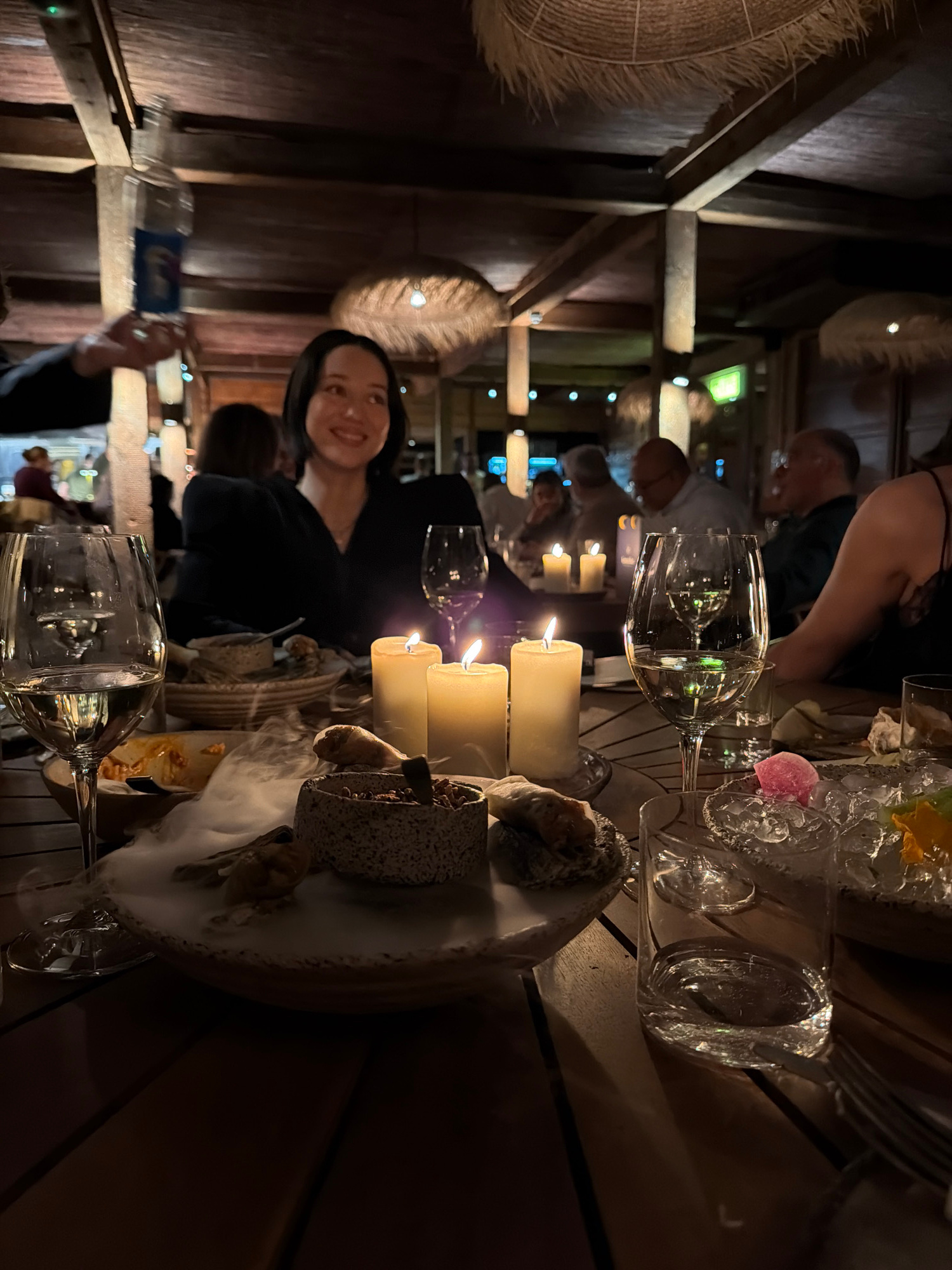 Here is a forensic description of the image: **Scene:** Indoor dining area. **Location:** The precise location is unconfirmed, however, based on the visual information available it is likely a restβ¦read more