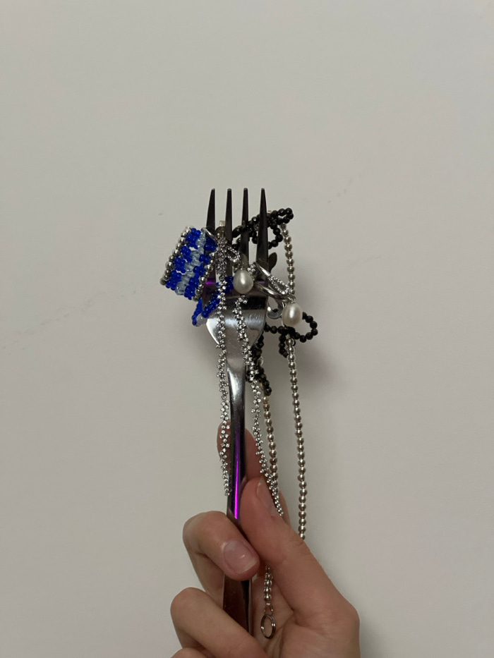 In Bjeliši, Montenegro, a close-up, vertical shot depicts a light-skinned human hand holding a silver-colored four-tined fork against a plain, off-white background. The fork is held by the handle, wit…read more