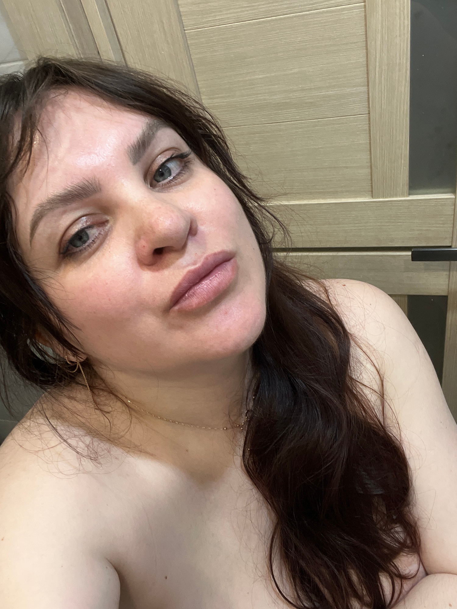 A close-up, angled shot features a woman with dark hair and light skin. She is wearing a thin gold necklace. Her eyes are visible, and her lips are a soft pink color. The background includes a light-c…read more
