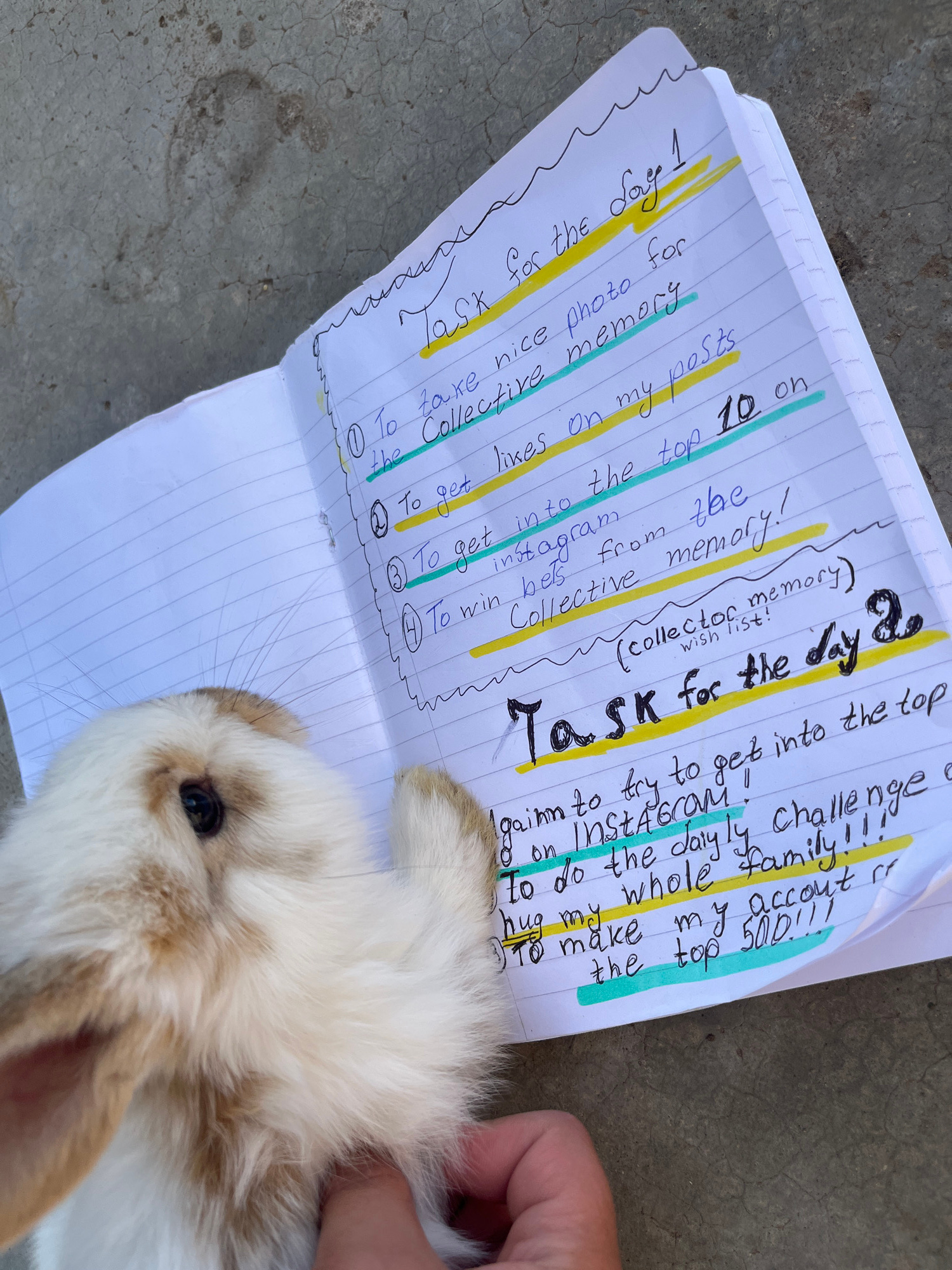 A close-up shot displays a notebook with handwritten notes lying on a concrete surface. The notebook is open, showcasing a task list titled "Task for the Say 1" and "Task for the day 2." A small, ligh…read more