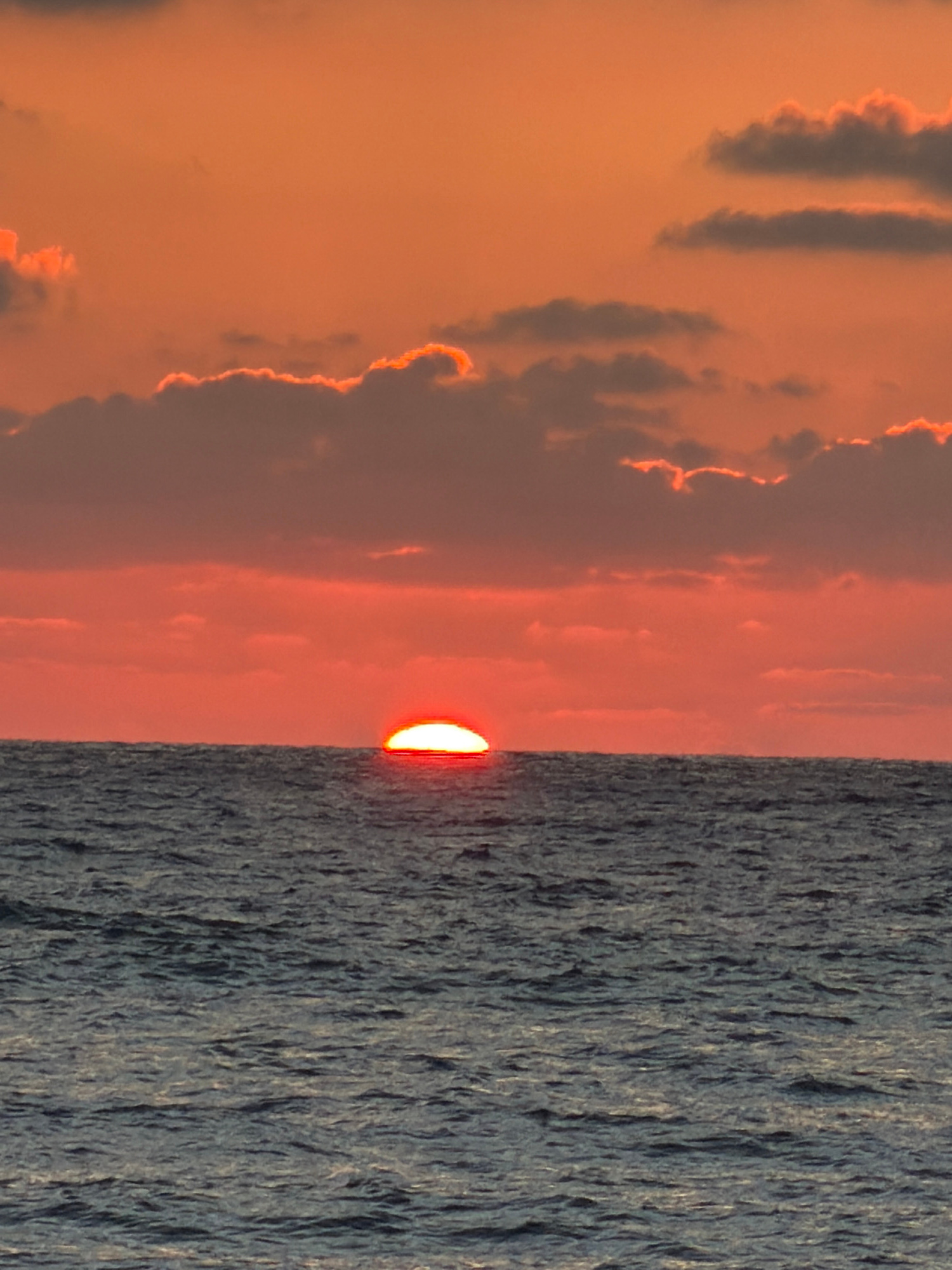 The image captures a sunset scene in Tel Aviv, Israel. The right half of the image showcases the Mediterranean Sea with visible wave patterns and the sun reflecting on the surface. The left half depic…read more