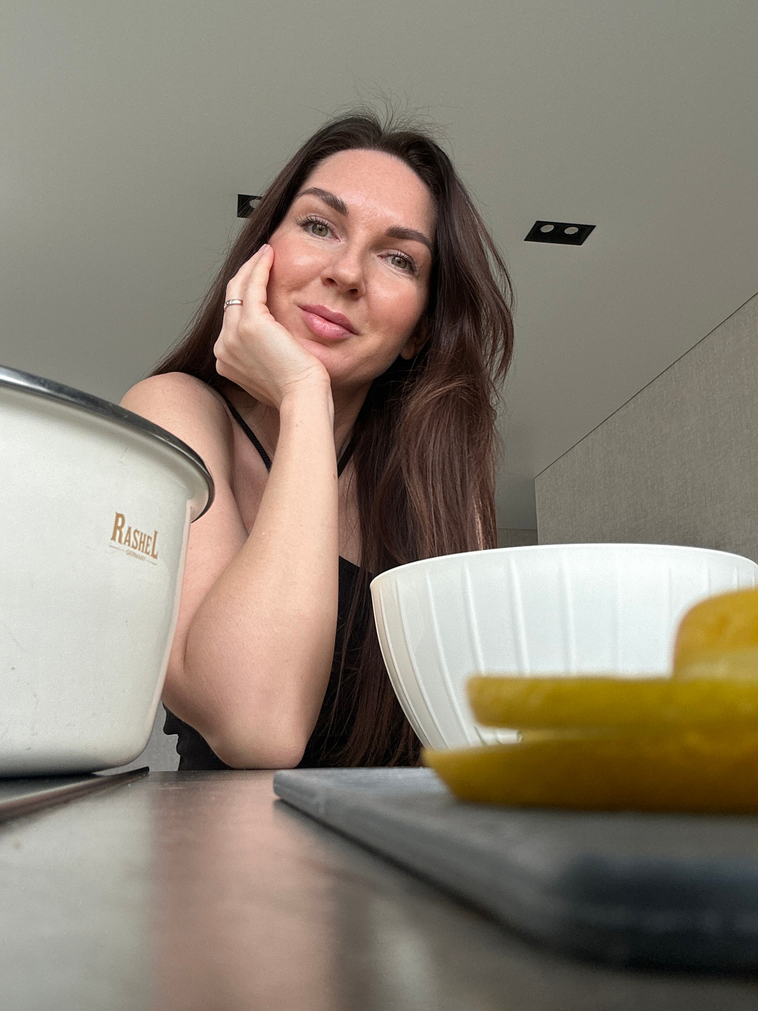 The image features a woman posing indoors, looking directly at the camera with a gentle expression. Her long, dark brown hair frames her face and extends over her shoulders. She wears a dark-colored t…read more