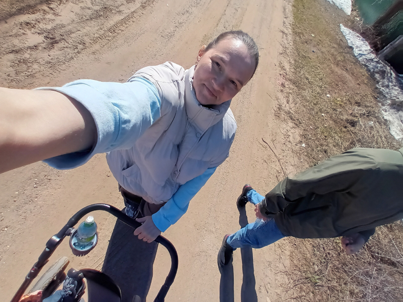 The image, taken from a low-angle perspective, features a person holding the handlebars of what appears to be a bicycle or a similar vehicle. The person is wearing a light blue long-sleeved shirt and…read more