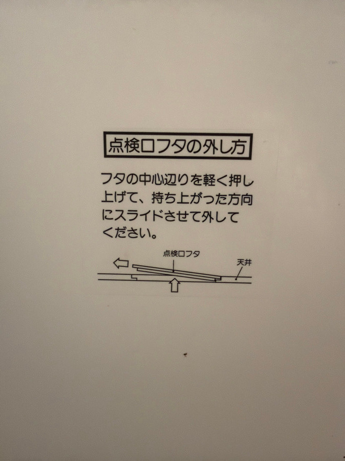 The image shows instructions in Japanese for removing an inspection port cover. The text, enclosed in a rectangular frame, reads "How to Remove Inspection Port Cover." Additional text explains to lighβ¦read more